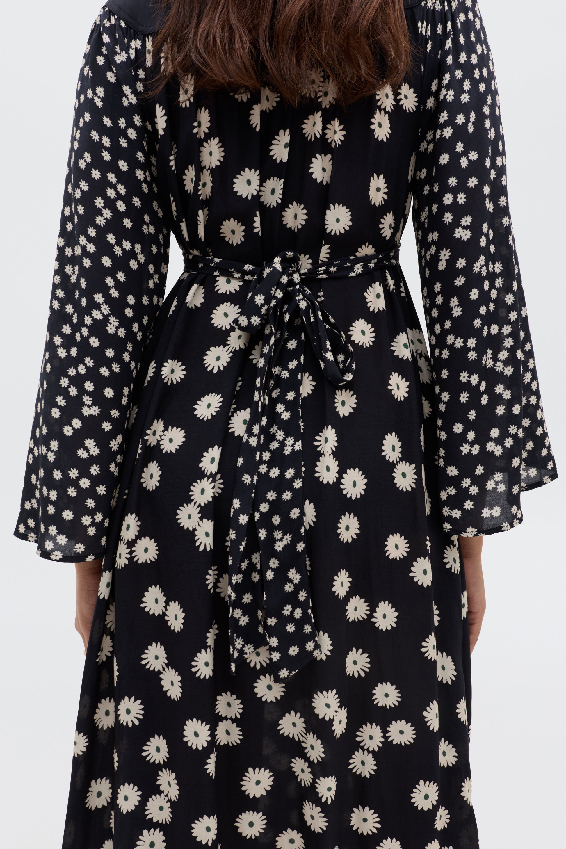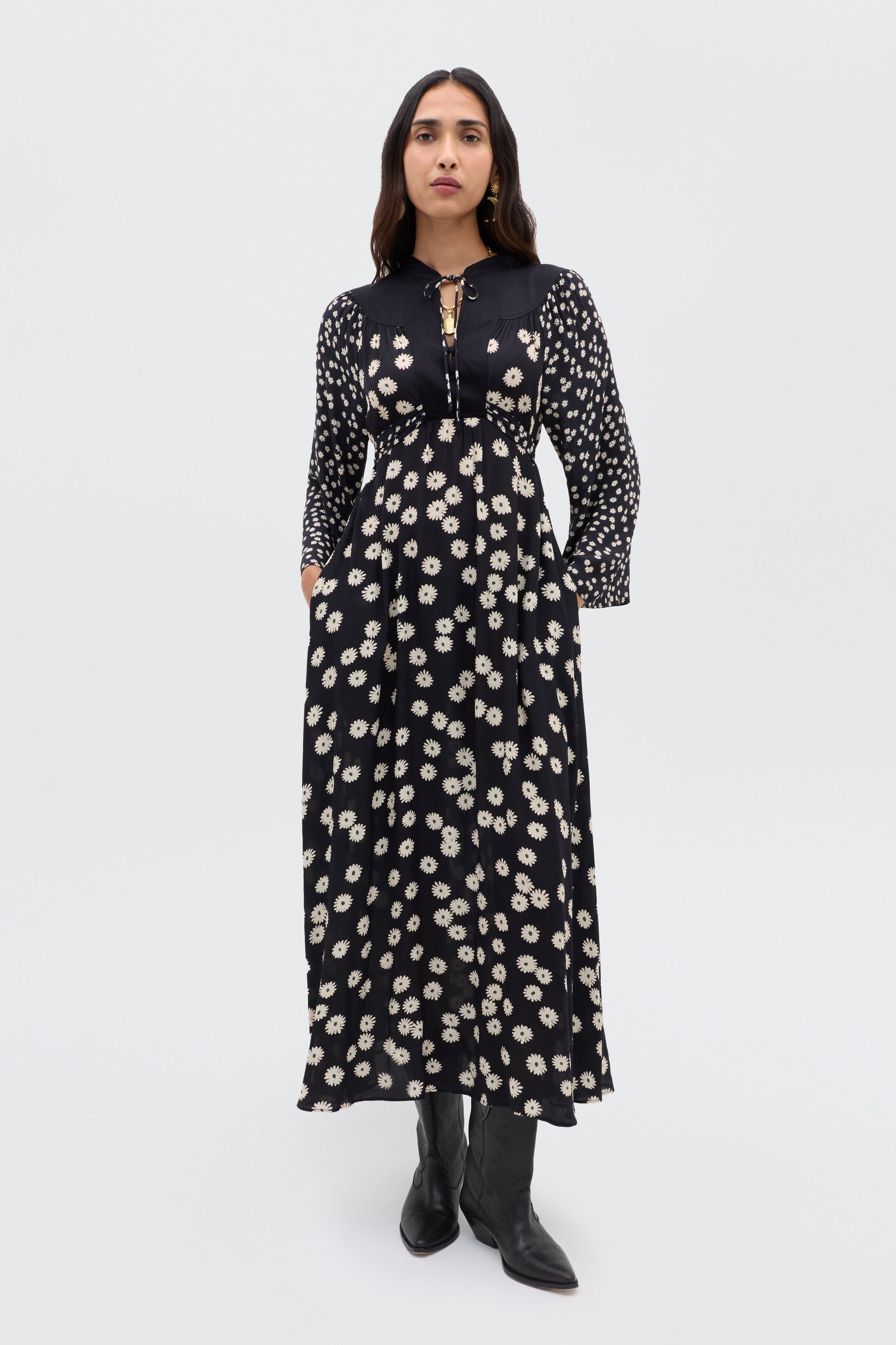 Our Anela is the epitome of relaxed and effortless, boho-elegance. Rendered from a lightweight crepe, it has a beautiful drape. The subtle flared sleeve and playful tie detail are a nod to free-spirited 1970s styles – a perfect dress for easy, everyday wear.