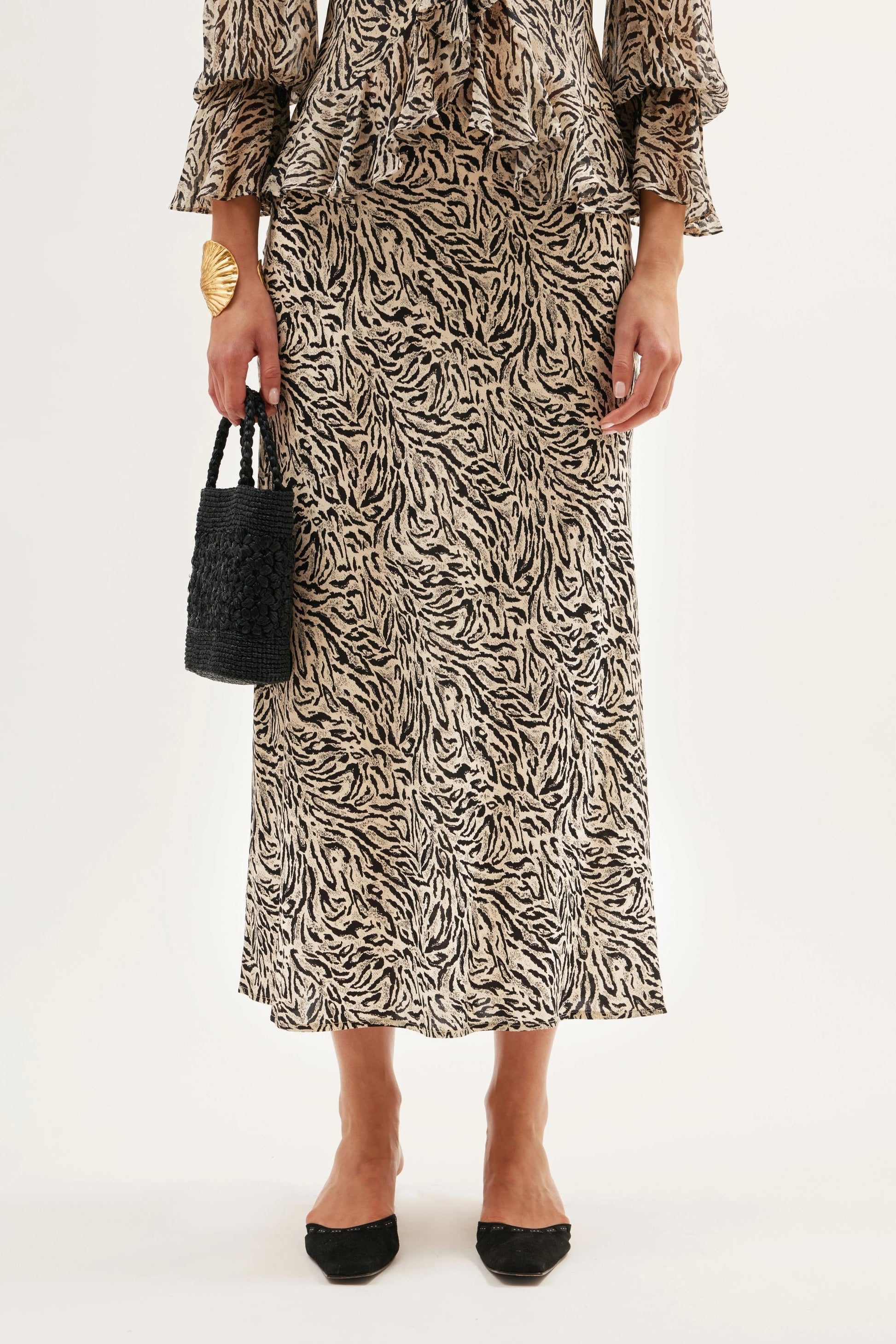 Our Ardith skirt is a bestseller for a reason - it's ultra versatile and the elasticated waistband makes it so comfortable. Consider the Leo Tan print a neutral and pair it with anything.