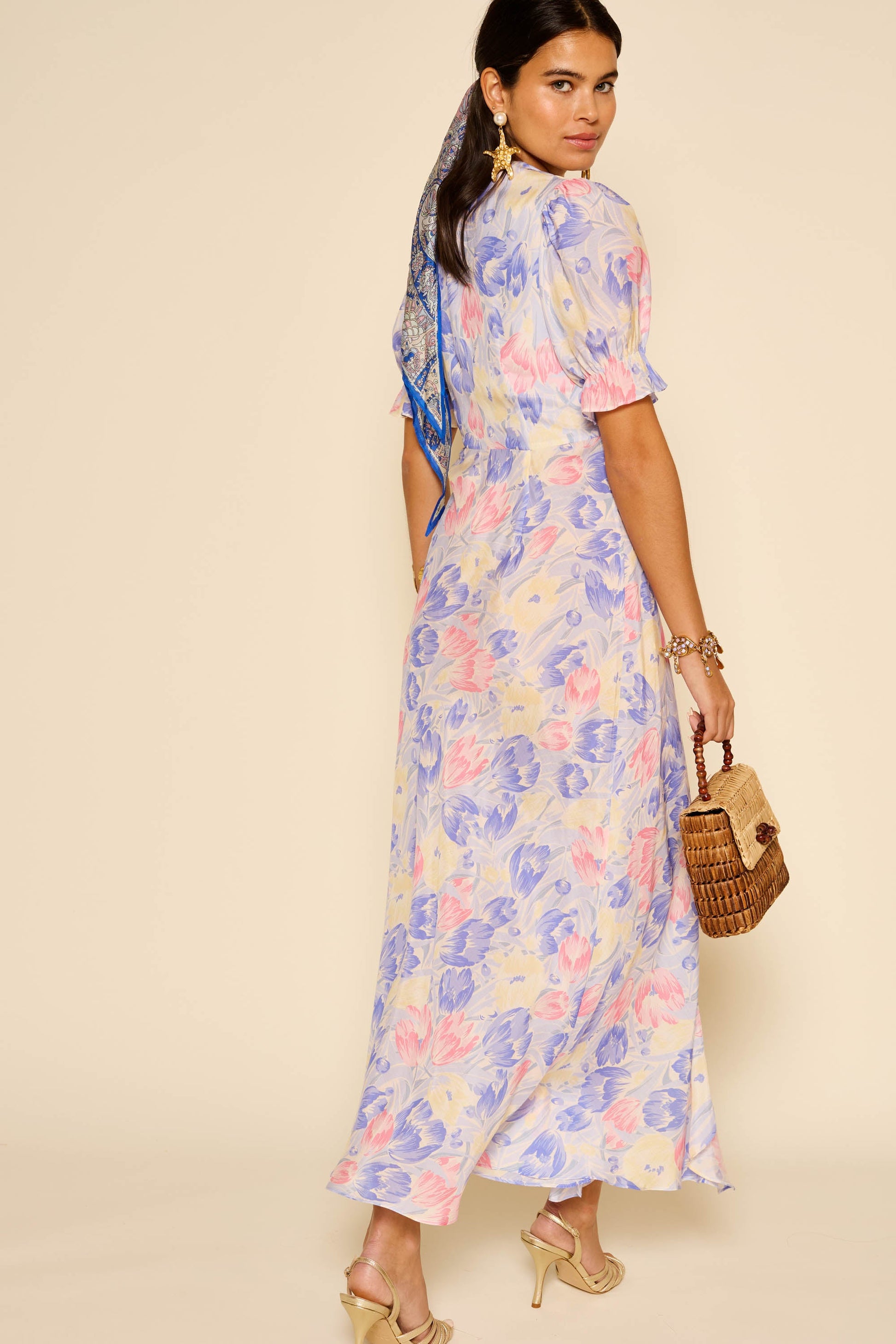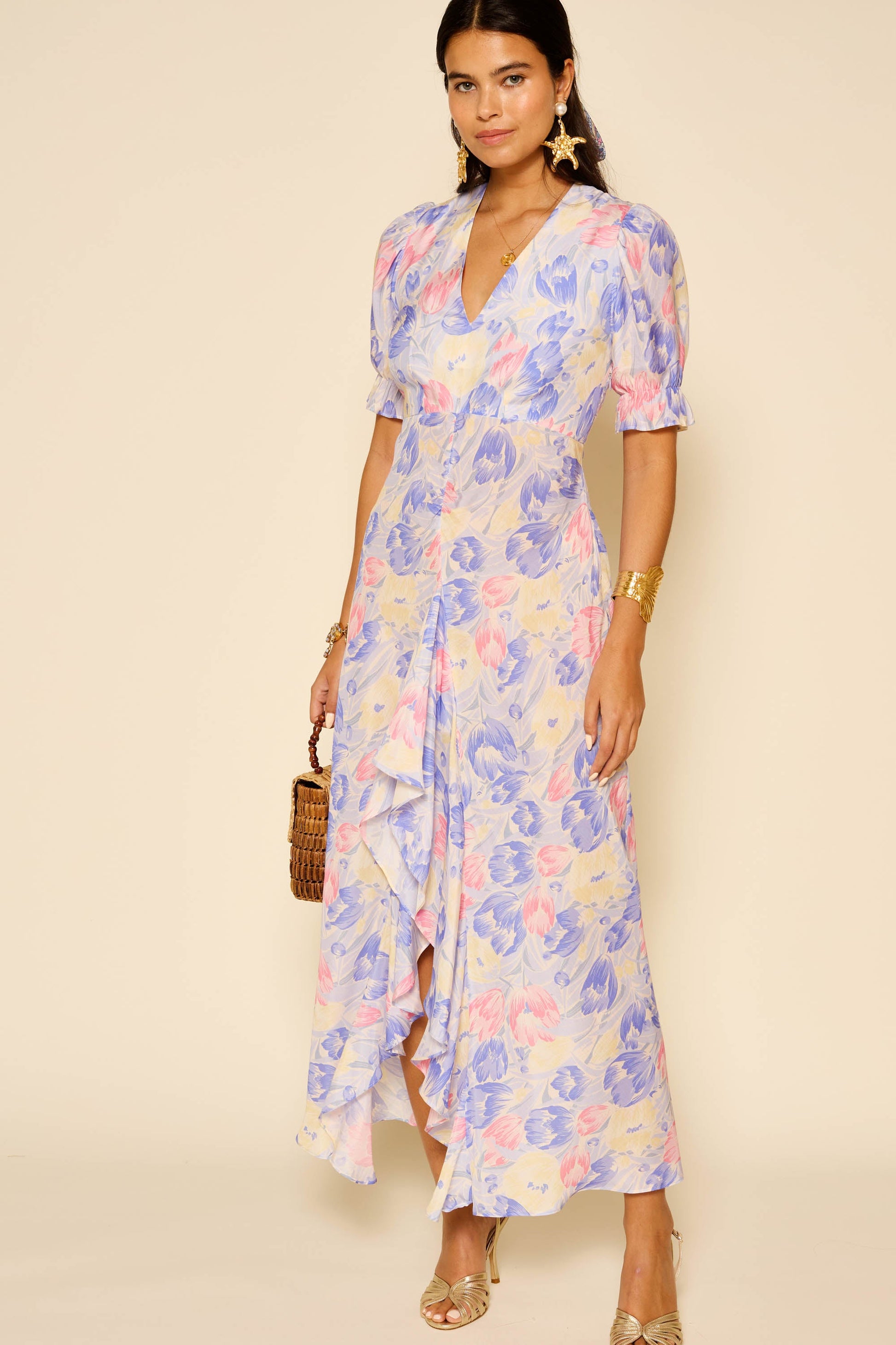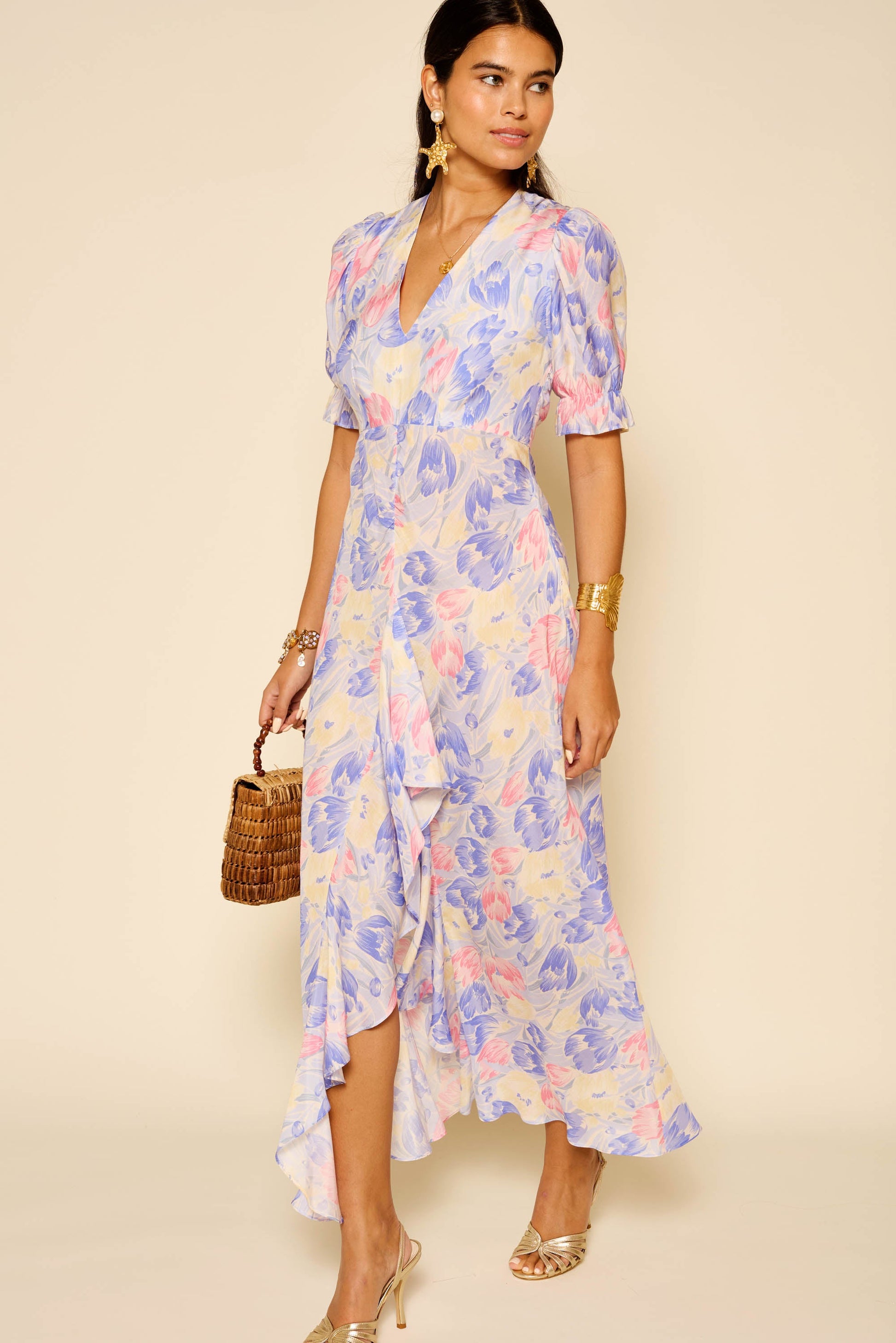 We've updated Ariel in our new, vintage-inspired Tulip Fields print and improved how the skirt drapes. The delicate blooms complement the delicate fabric and floaty, ruffled hem. It's the perfect dress for special occasions. You may also like Hayley.