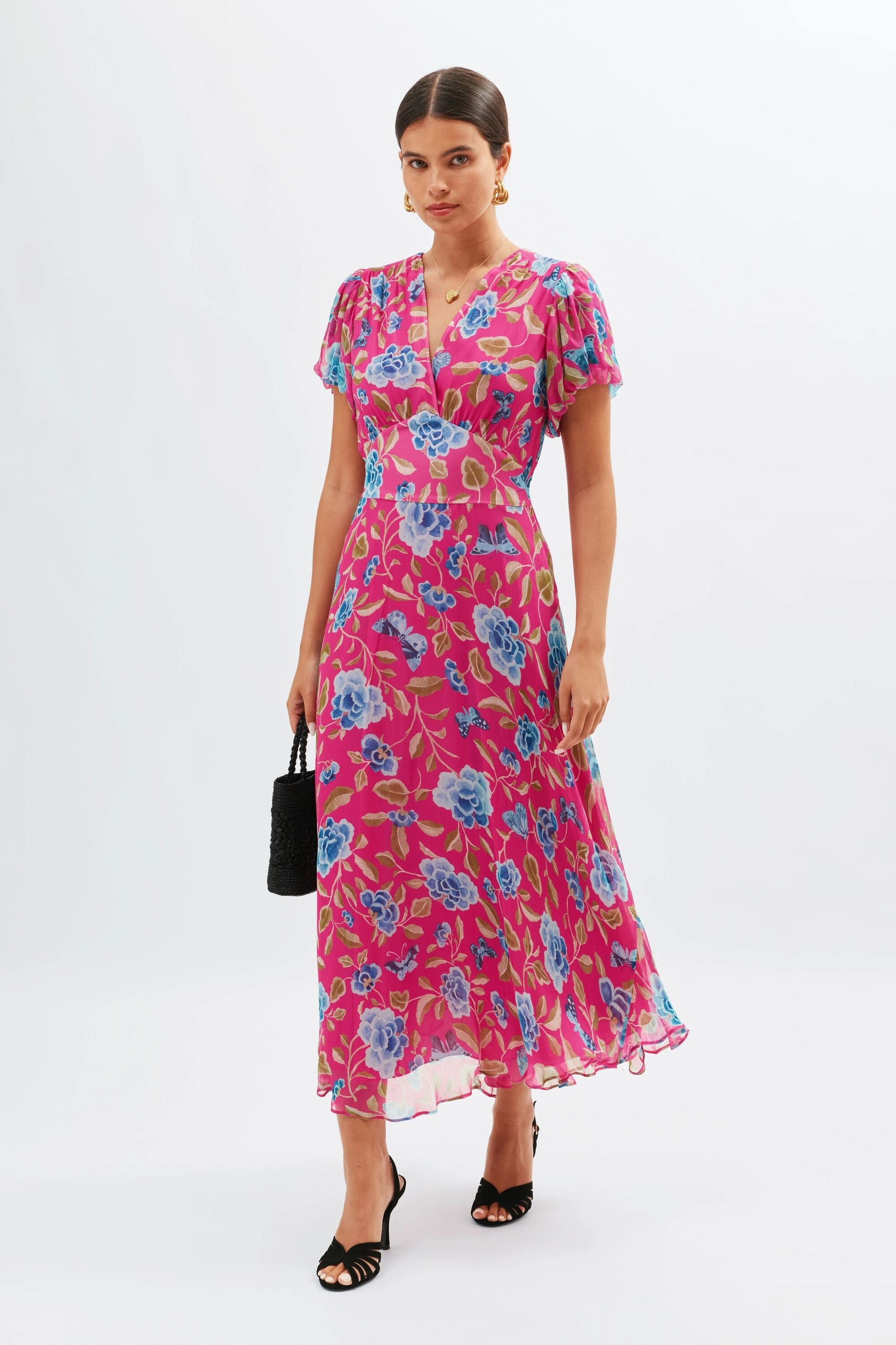 We've updated our Corrine dress with more of a blouson sleeve and an even better fit through the body. The delicate Butterfly Floral Magenta print is perfect for summer events and the flattering shape is enhanced by waist ties.