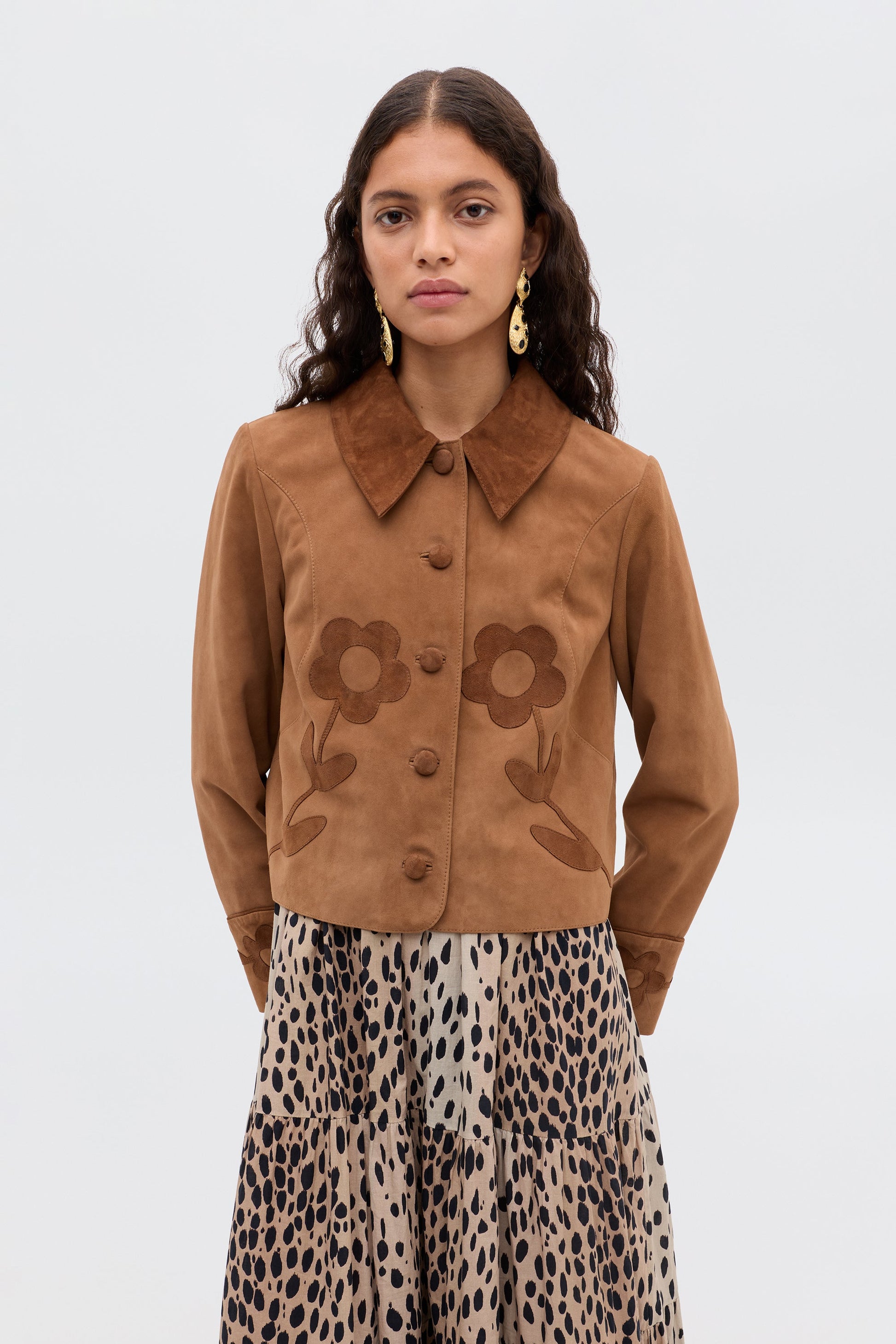 Dionne is an archival RIXO piece, inspired by vintage souvenir jackets and updated so it fits better than ever. It's appliquéd with daisies and made from suede that will get even softer with age.