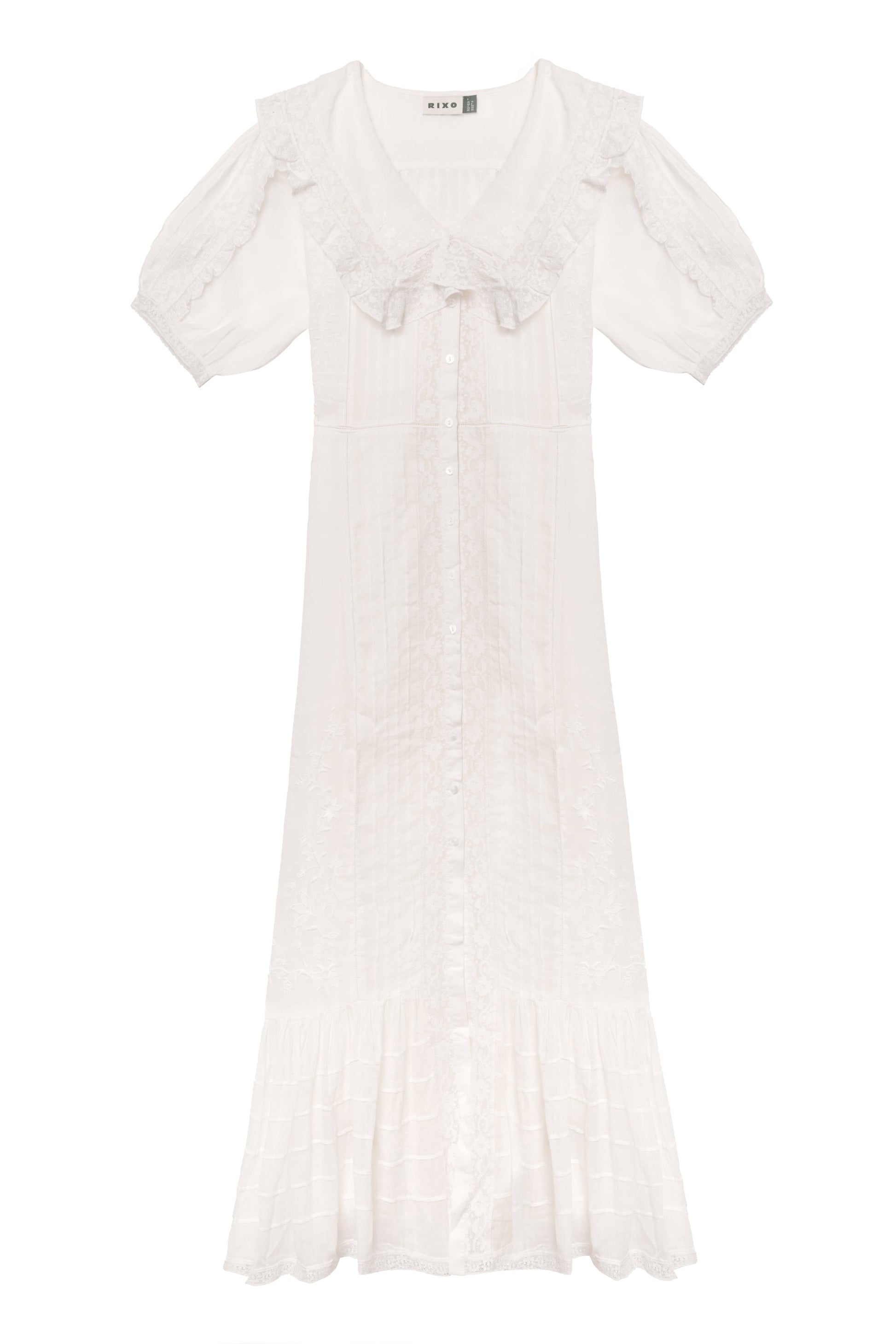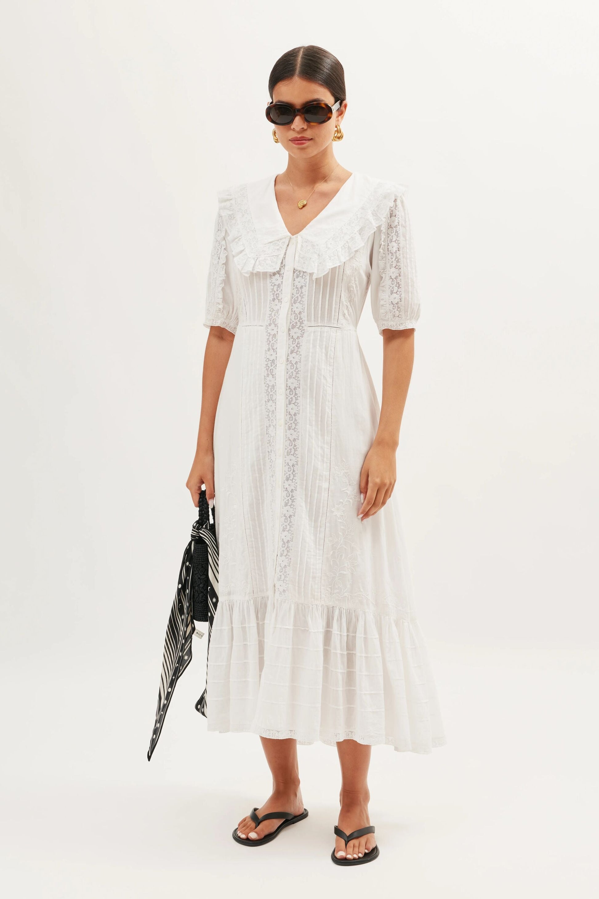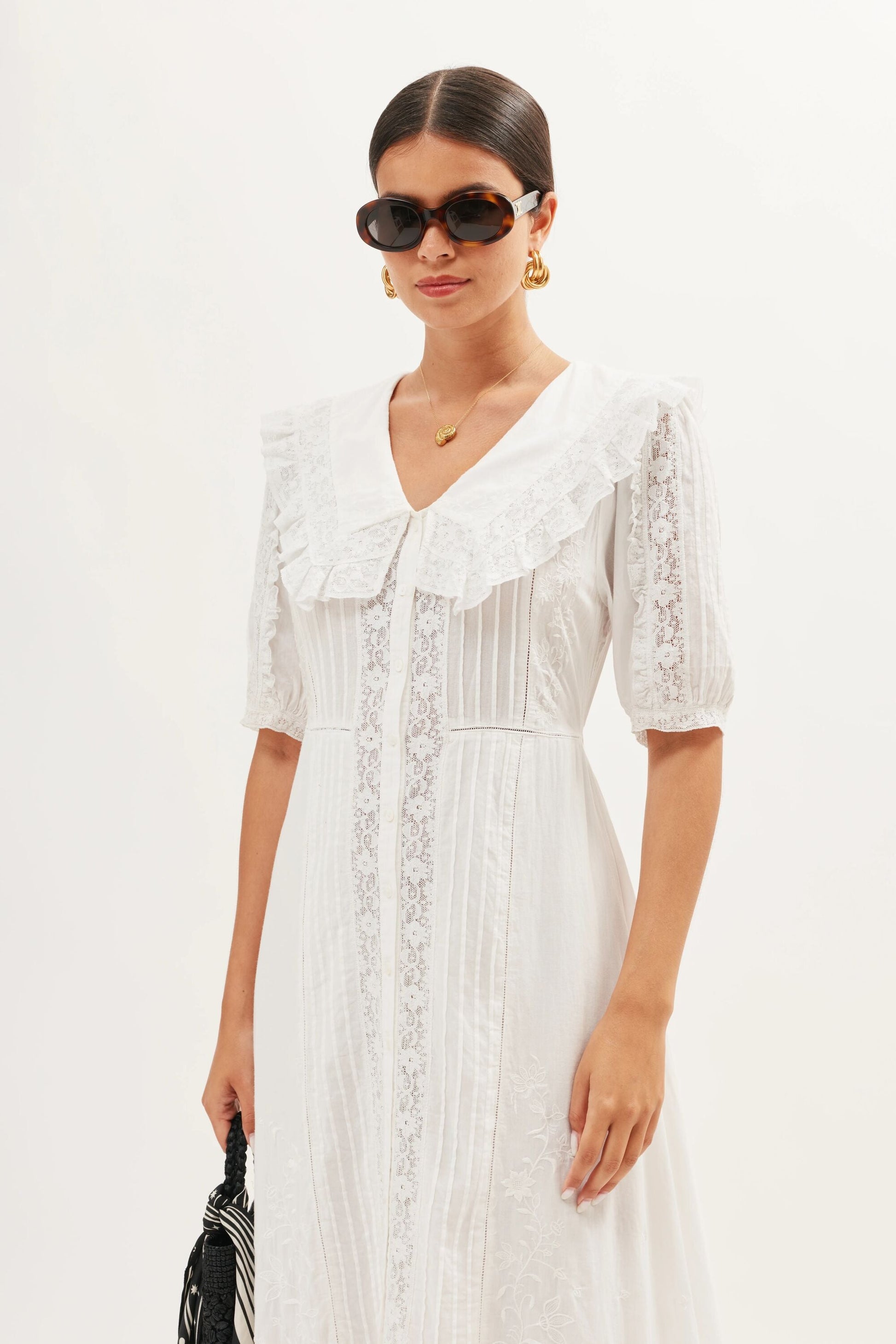Available in regular and petite. Edina is the big sister to our bestselling Ellery blouse. It's made from breezy cotton-voile with all the same gorgeous lace and added embroidery. Waist ties allow you to adjust the shape. You might also like Hilary.