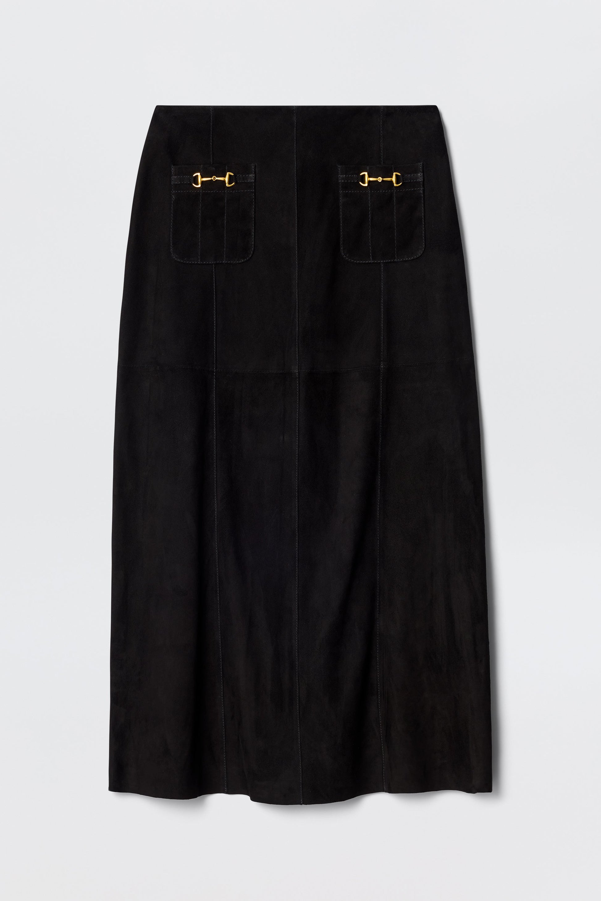 Edwina is a timeless classic. Rendered in 100% suede it's a future wardrobe heirloom. Vintage-inspired, it's designed in a high-waisted, A-line silhouette that's great for days in the office but also weekends hunting for treasure at Portobello.