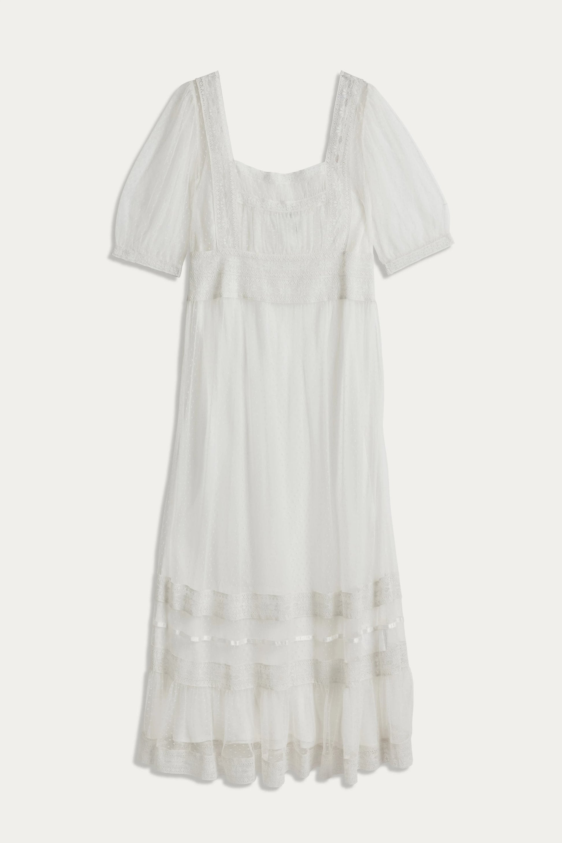 This elegant Hadley dress is inspired by a vintage top our design team loved. It's made from delicate Swiss dot tulle with cotton-lace trims and a slip lining.