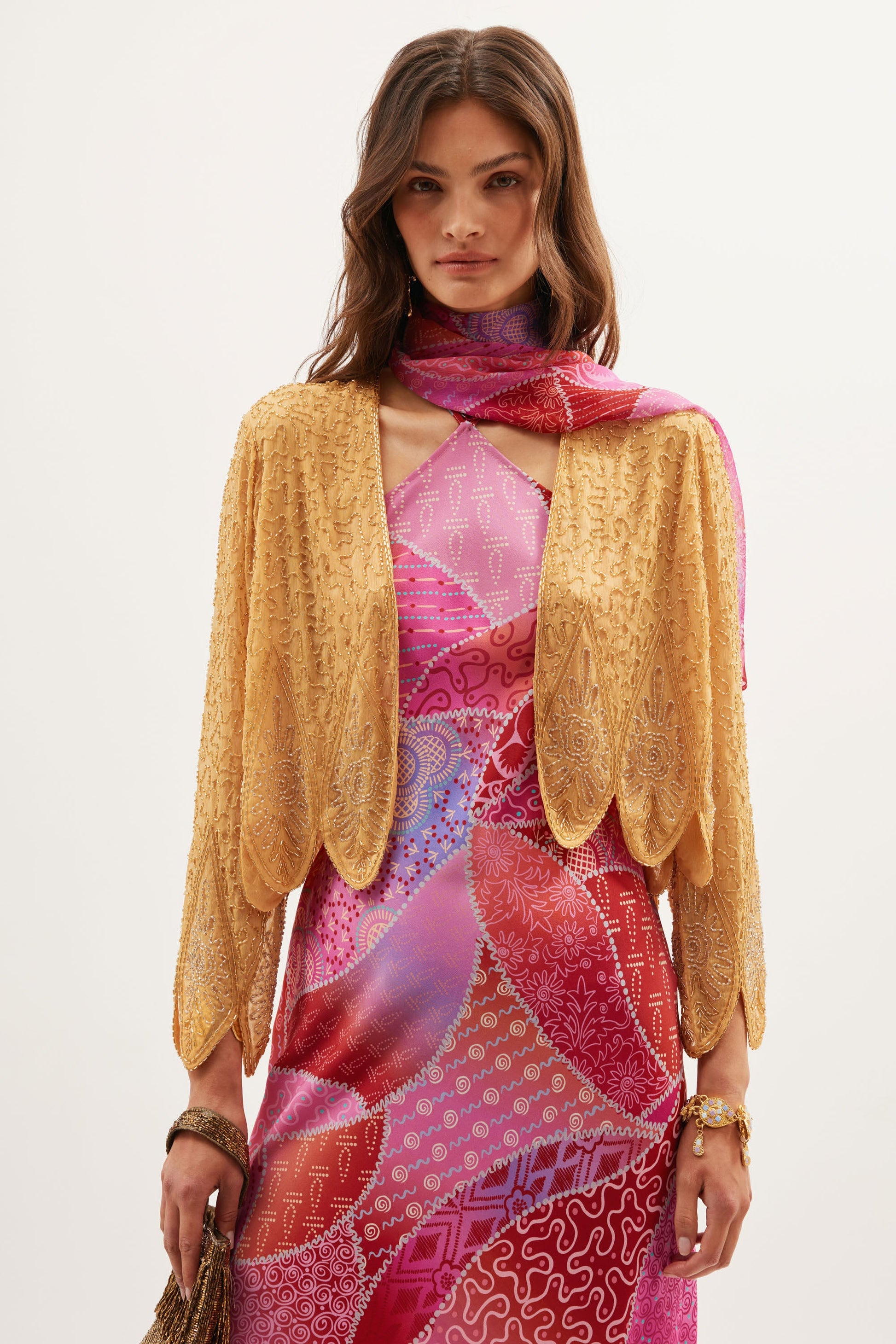 Make an impression in our gorgeous Hayley dress. It's made from silk crepe de chine and comes with a detachable georgette scarf that trails down the back. The popper fastening makes it easy to remove.