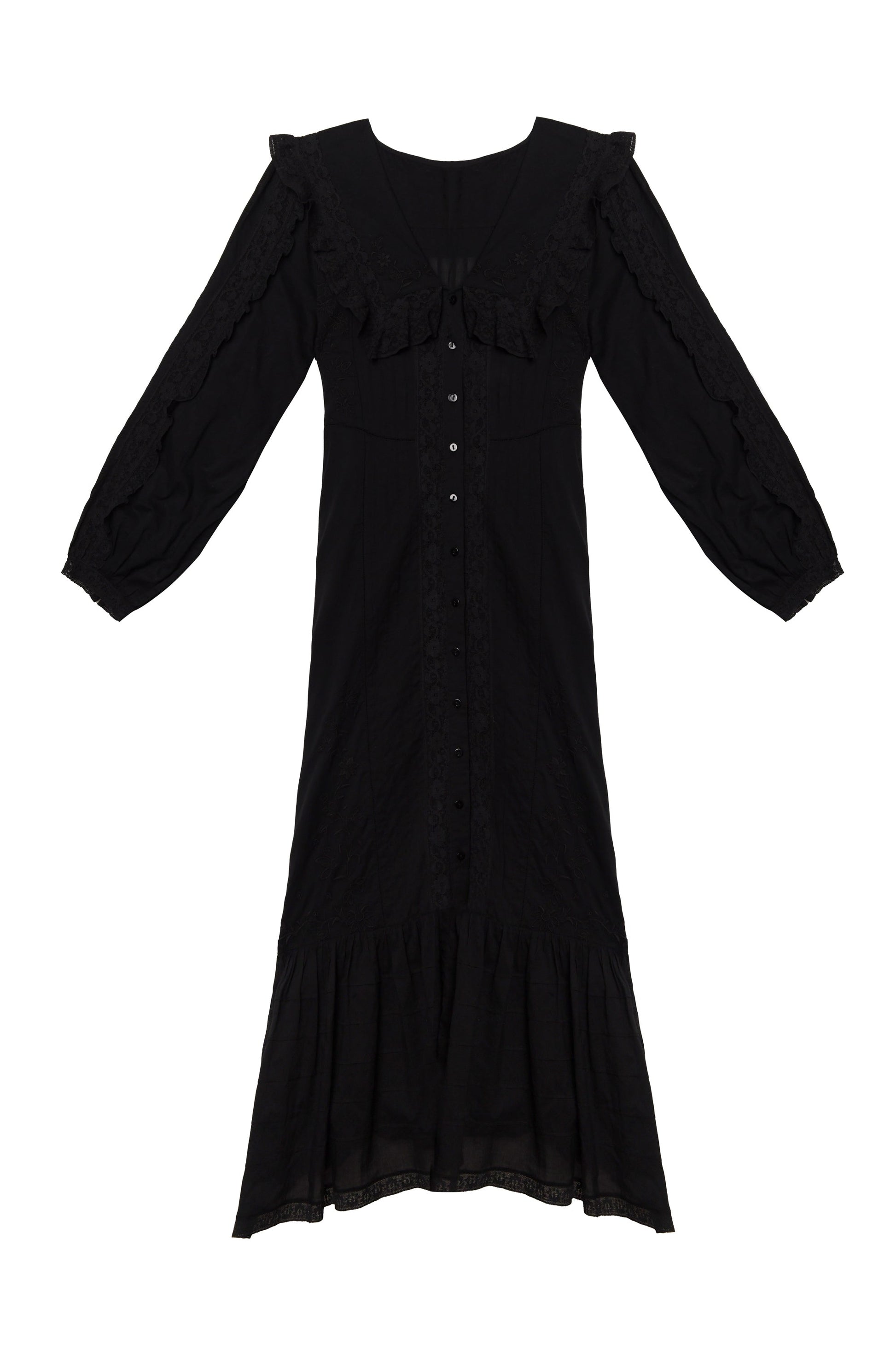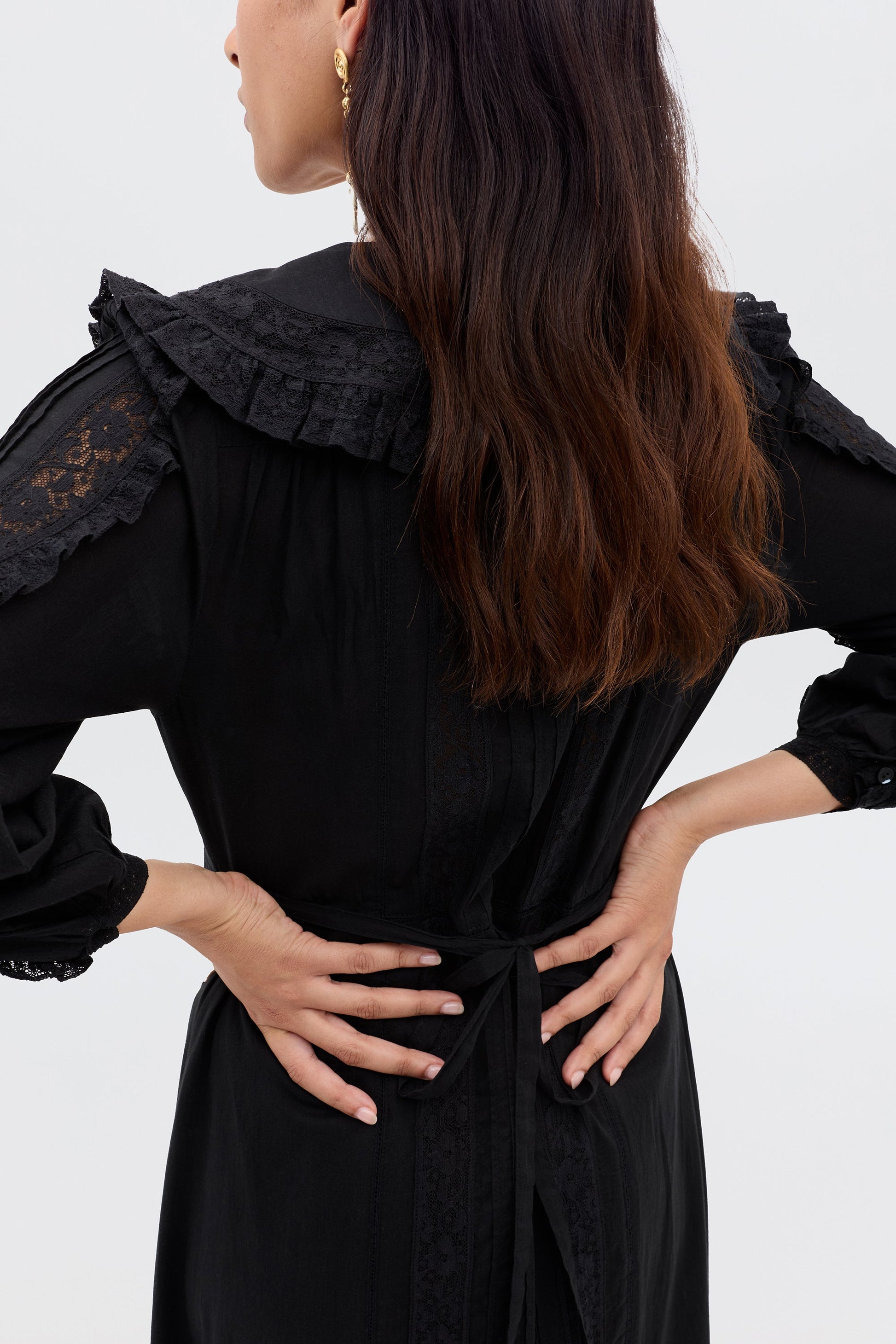 Effortlessly feminine and timeless, this Hilary dress is modelled on our bestselling Maribelle blouse. It's made from breezy cotton-voile with pretty lace trims and floral embroidery. Use the waist ties to adjust the shape.