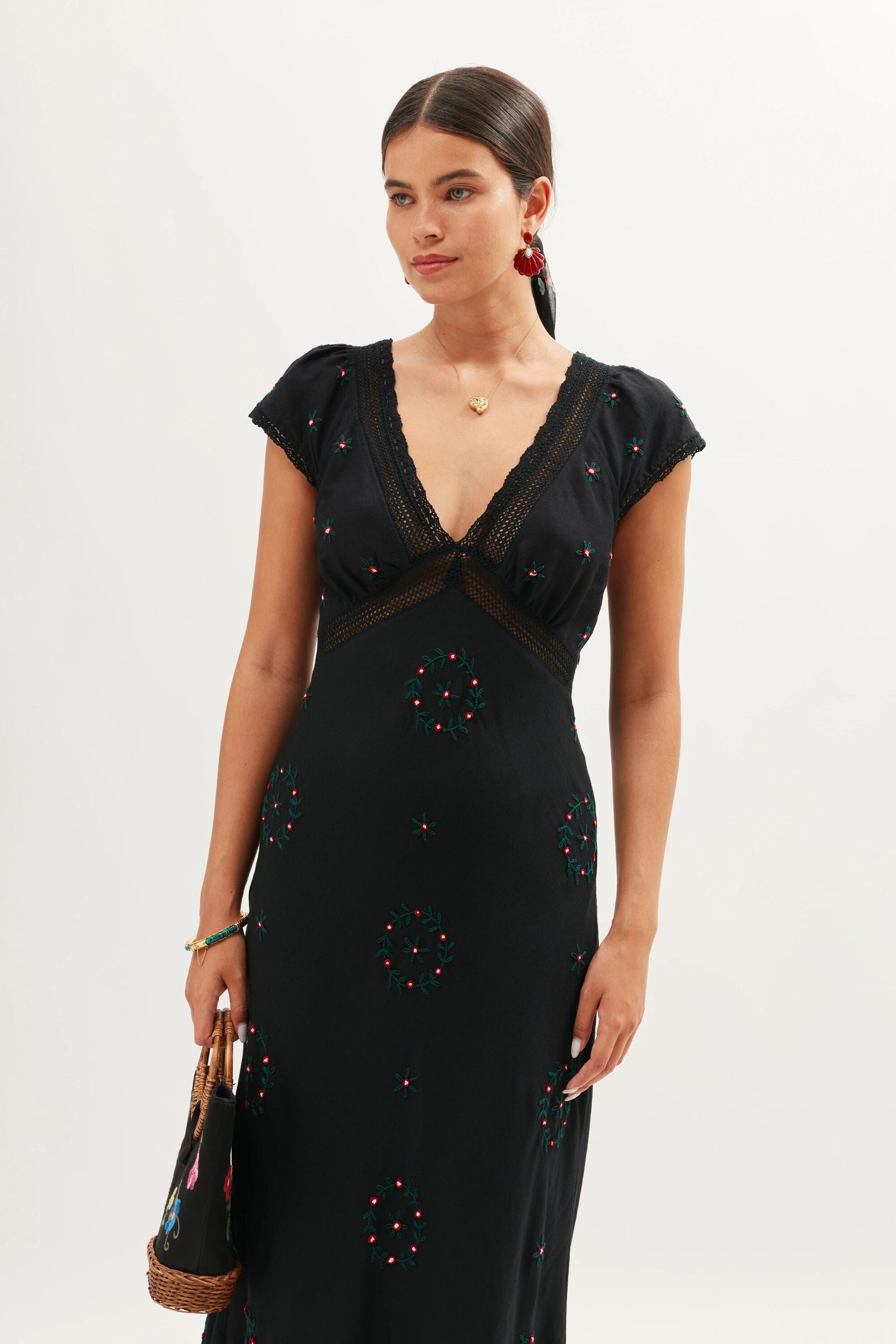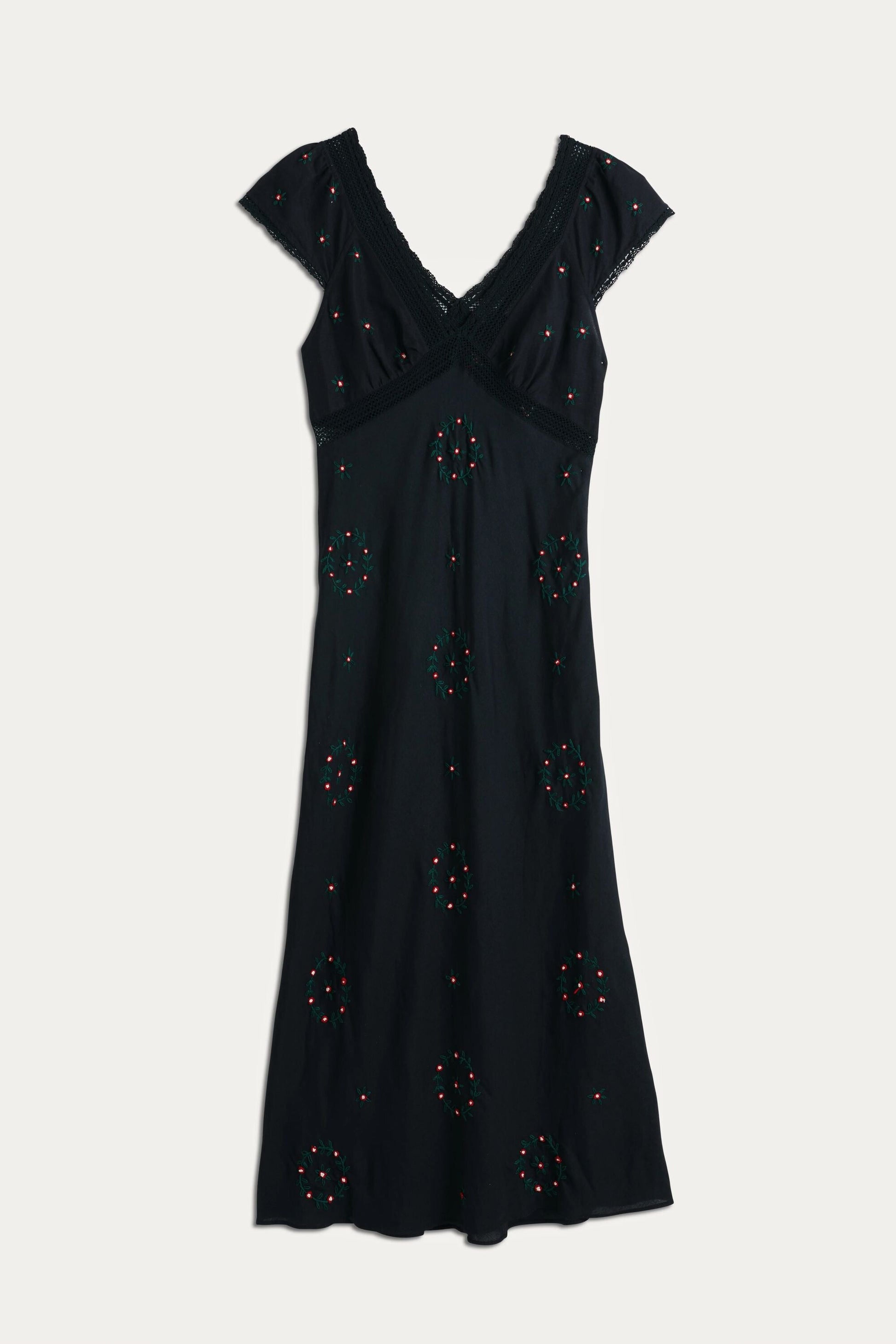 Our Iggy dress is such a versatile style to have in your wardrobe and we've updated the fabric so it's better than everl. Cut on the bias, it's trimmed with cotton lace and embroidered with florals.