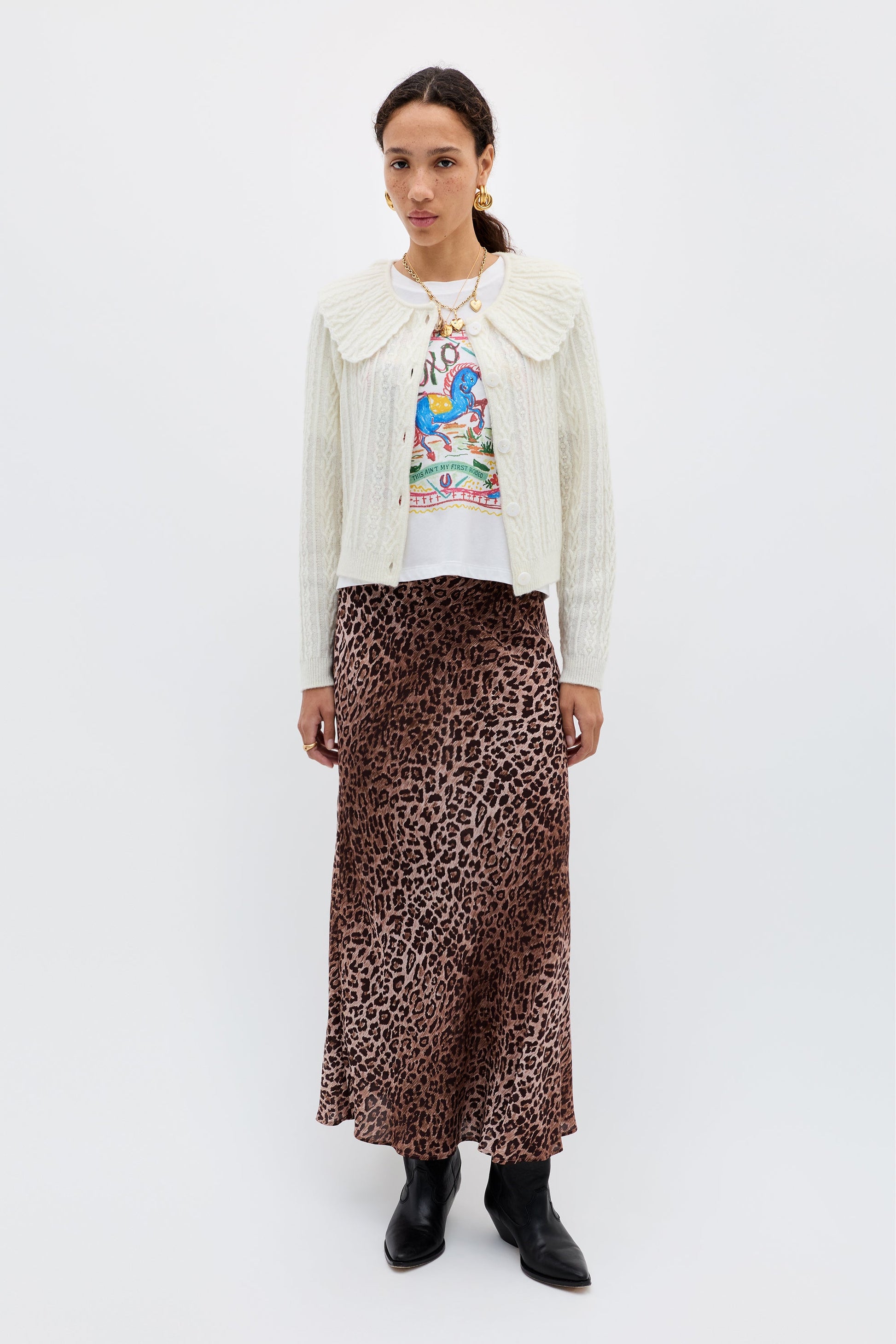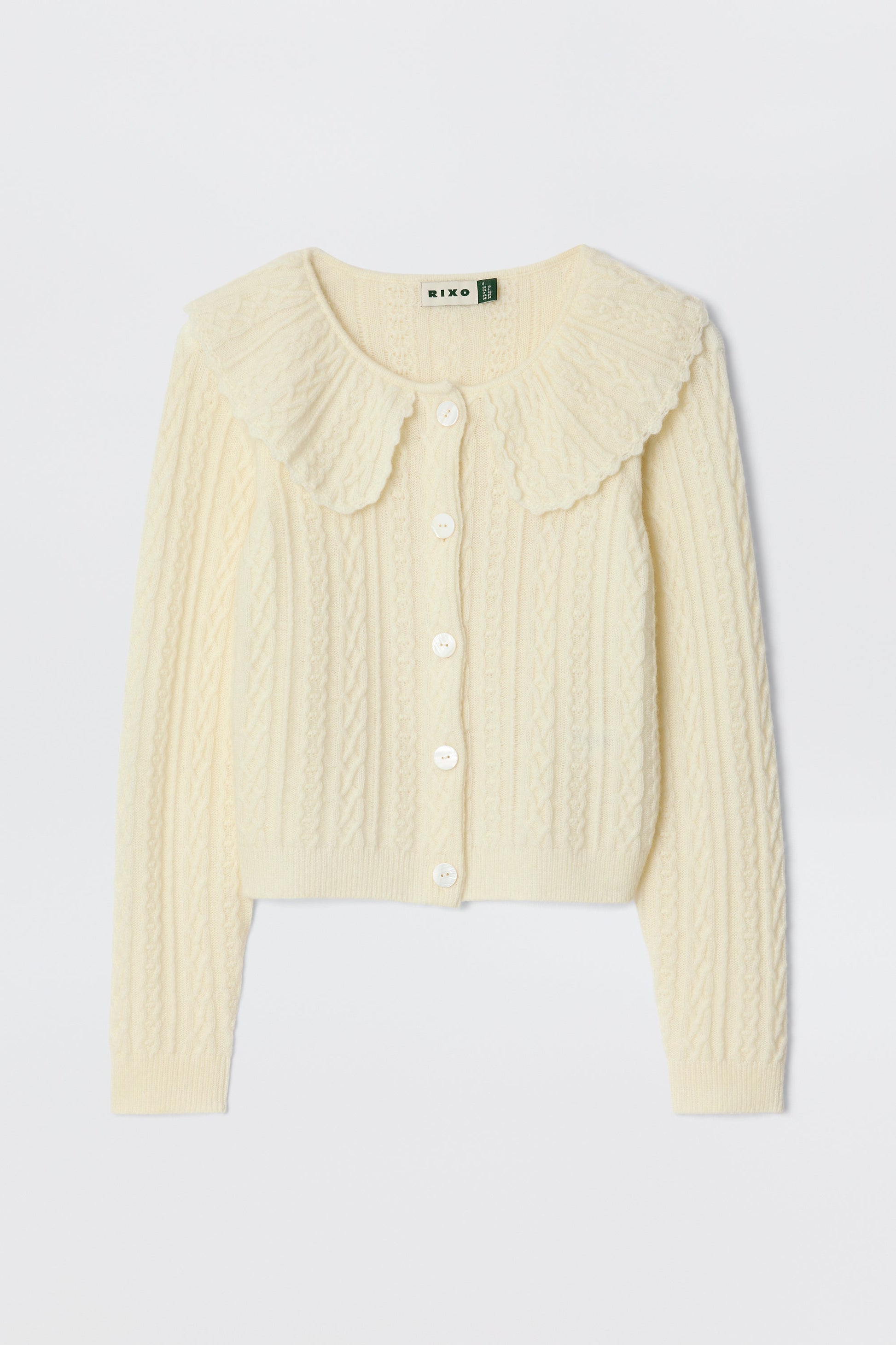 Our favourite dressed-up cardigan now in a new cosy, cable knit – perfect for transitional dressing. A classic style, with a versatile cropped hem and sleeves, that styles beautifully with high waisted skirts and over dresses. It's the ultimate soft layer for Sunday trips to the flower market.