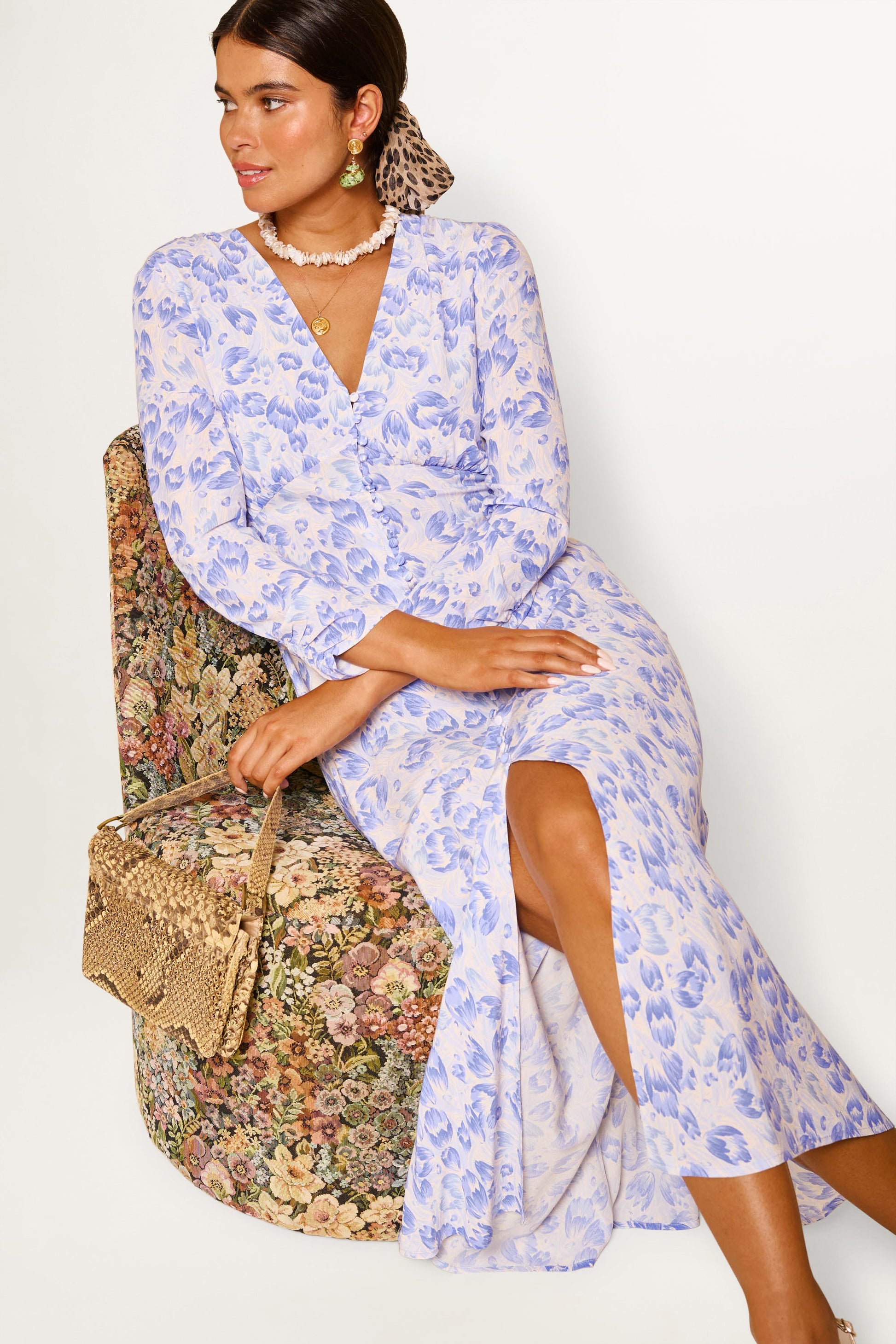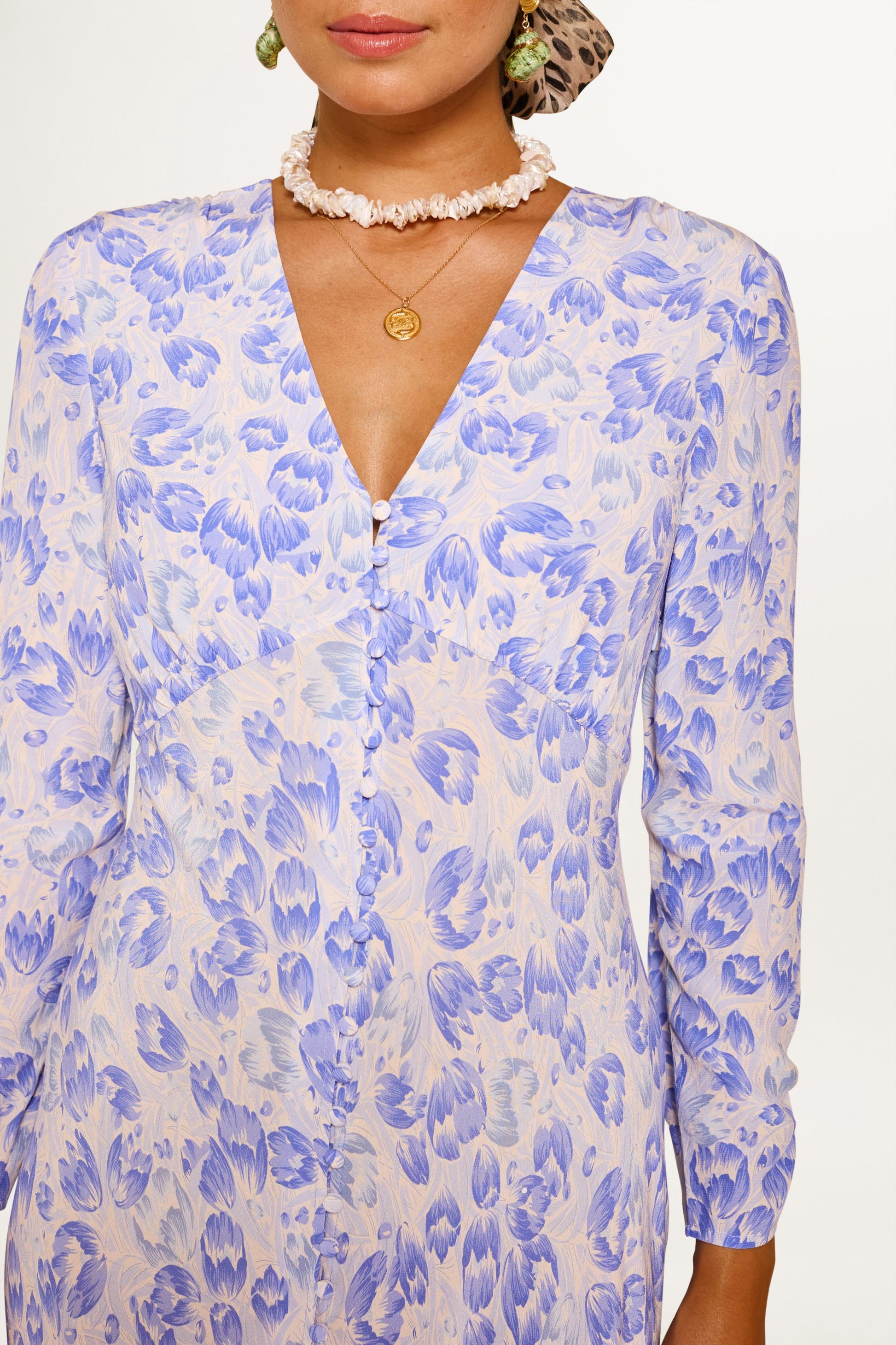 We've updated our Katie dress so it fits better than ever - the shape at the waist is especially flattering, and the sleeves are slim but comfortable. The hand-painted Tulip Fields print is perfect for spring and summer.