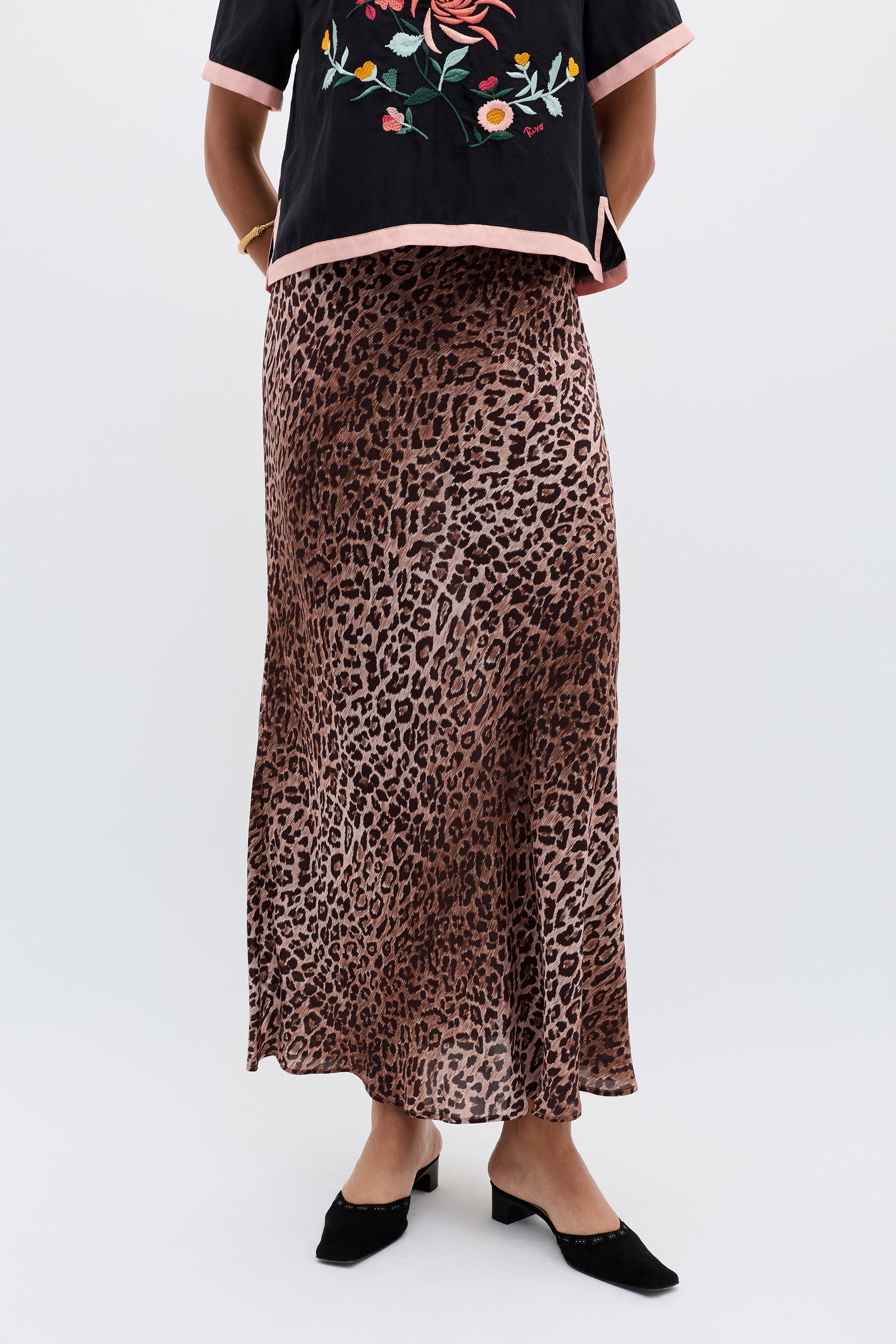 This silk crepe de chine Kelly skirt is a RIXO classic - in our world, leopard print is a neutral which means you can style it with so many different tops. It's cut on the bias for a figure-skimming shape across the waist and hips.