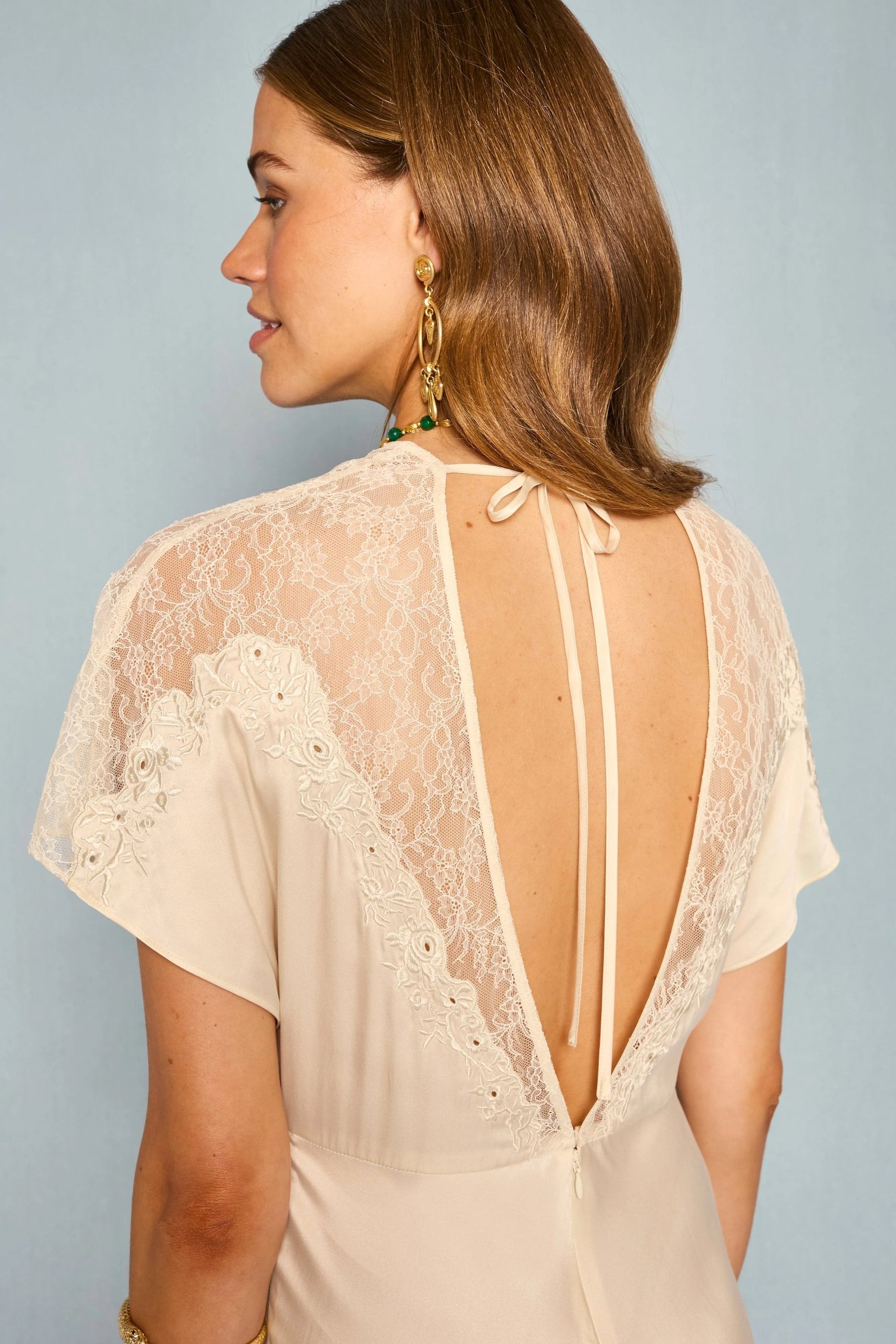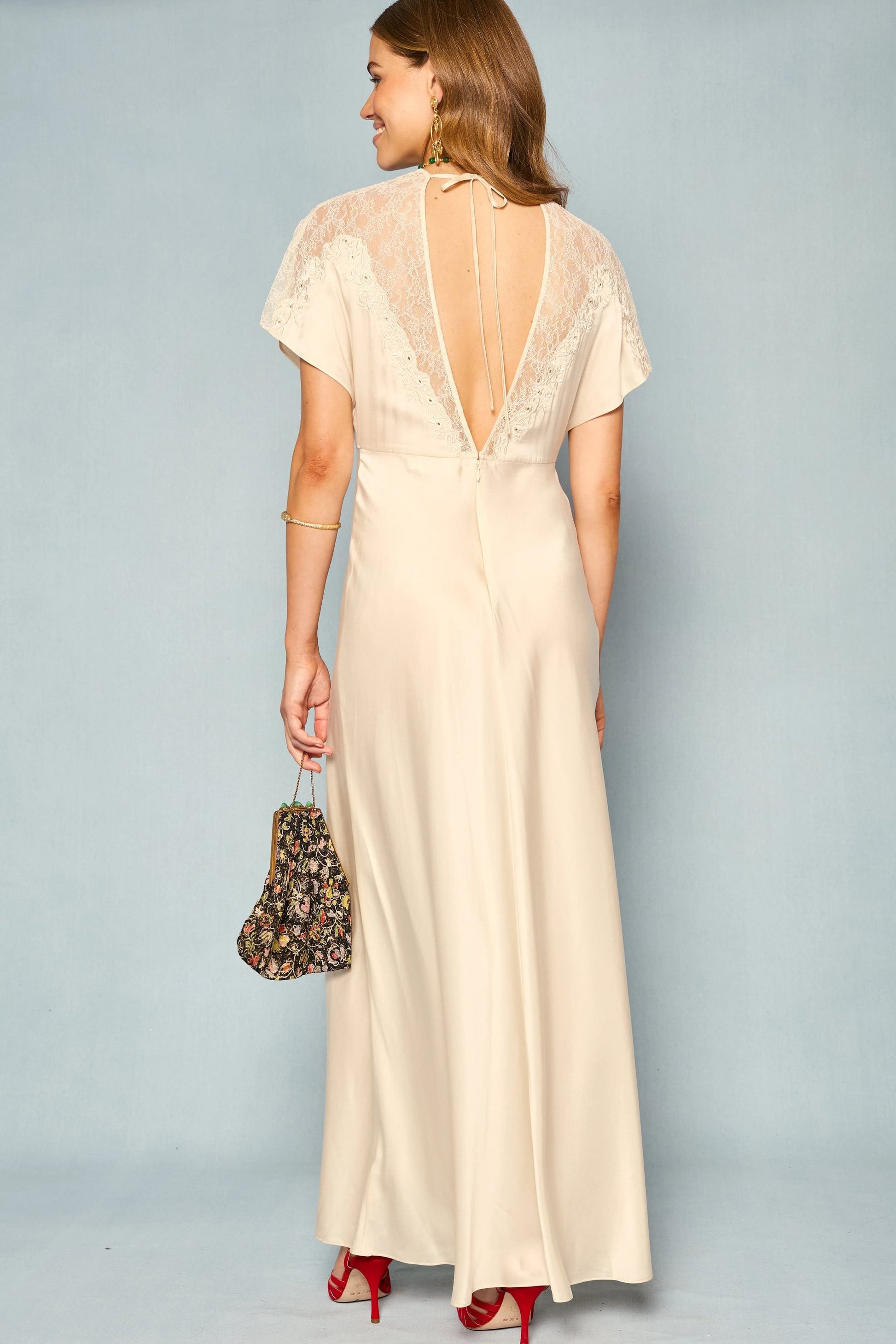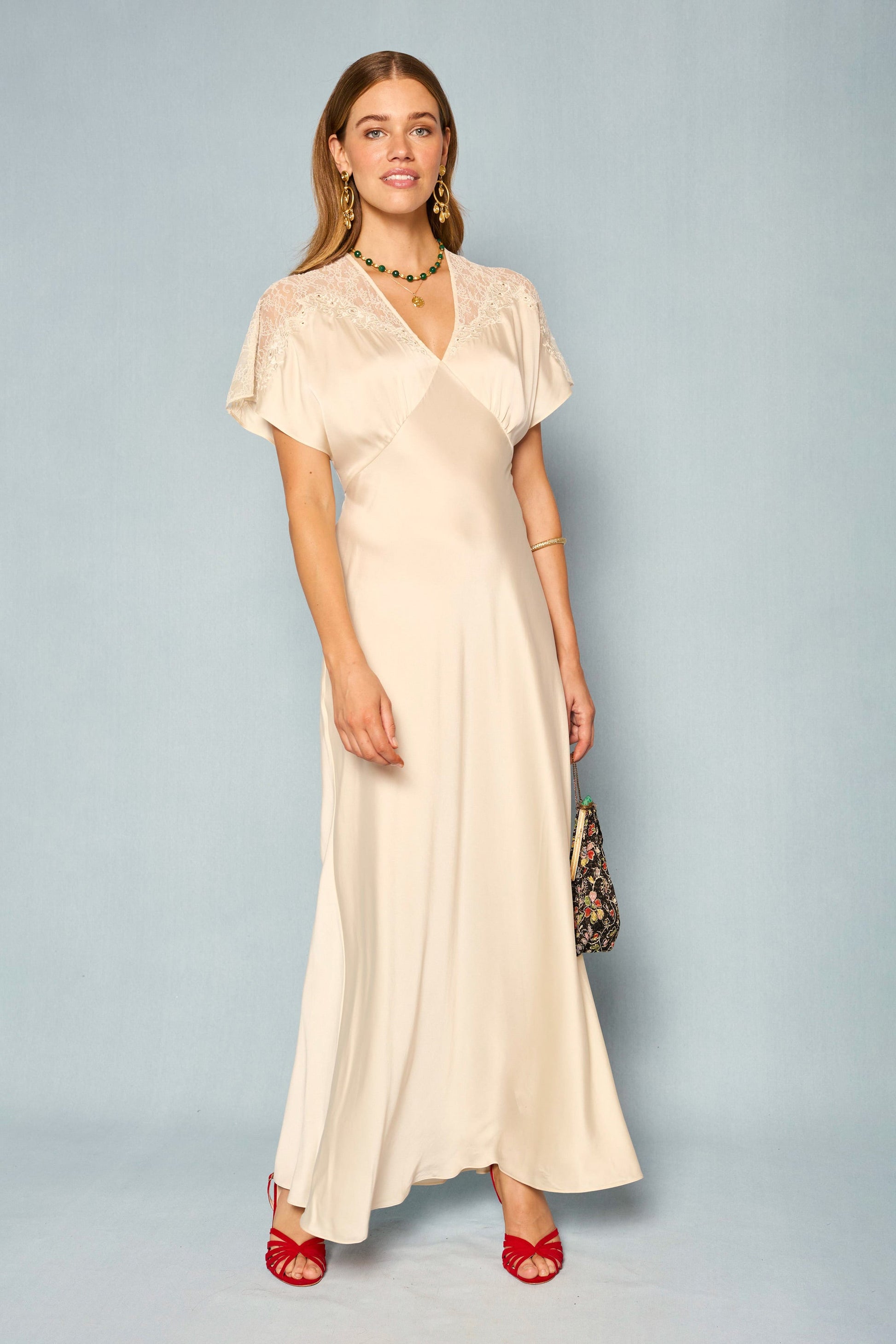 Meet Marcie a vintage inspired silk bridal dress with delicate lace and embroidery detailing