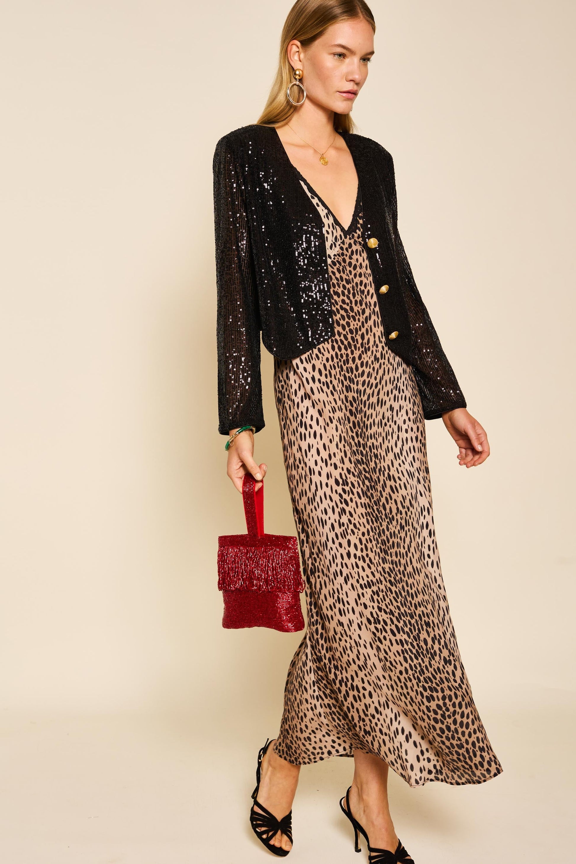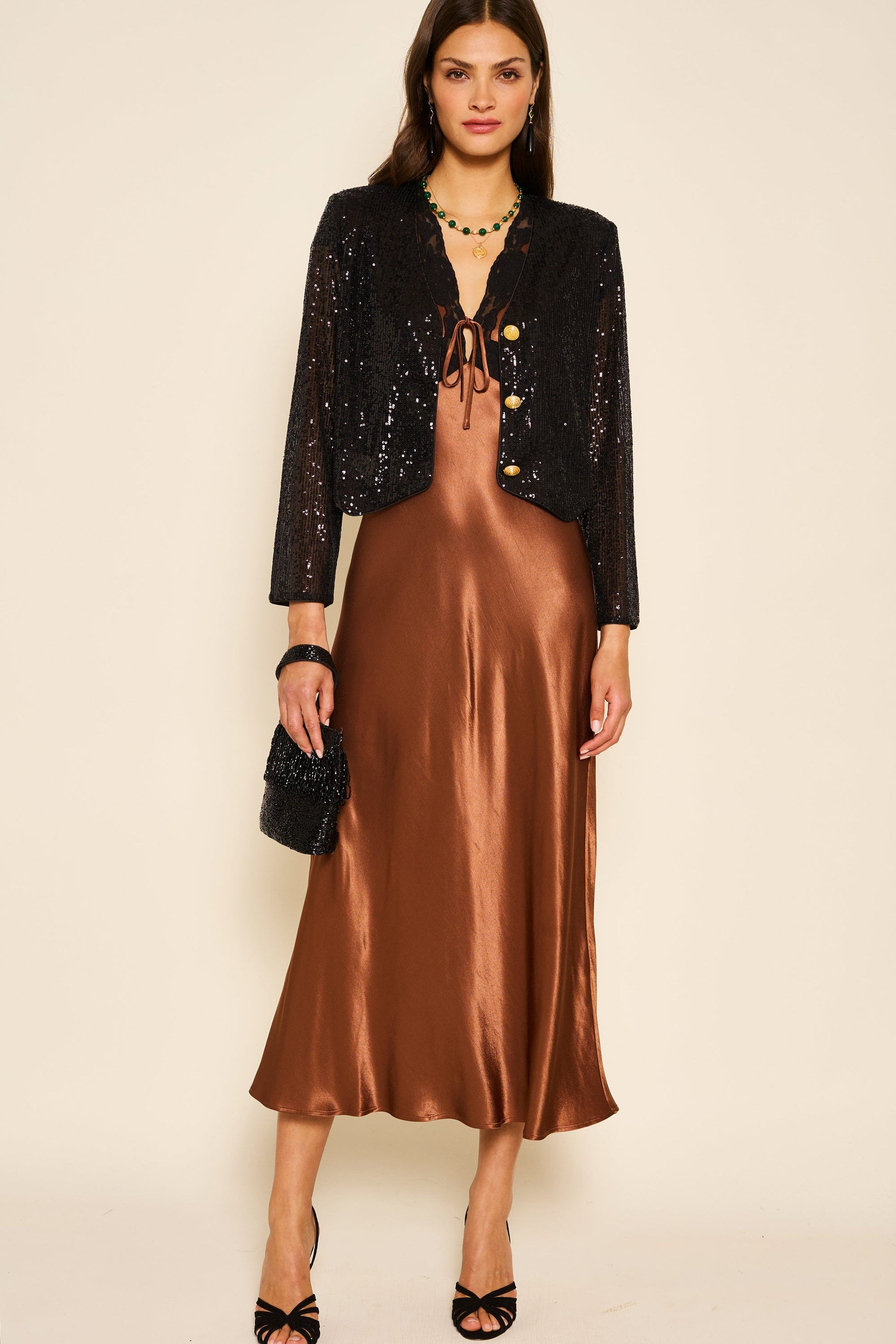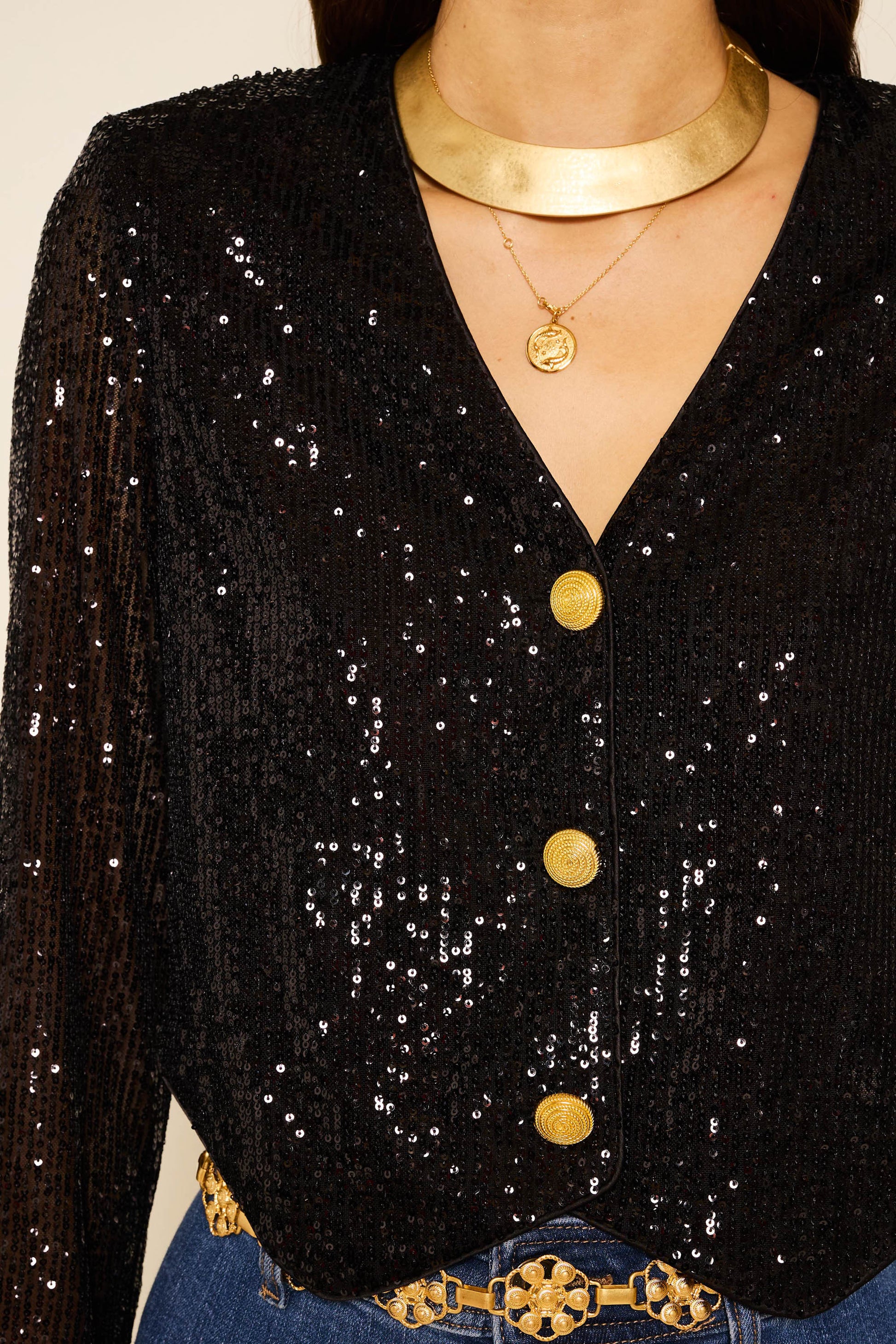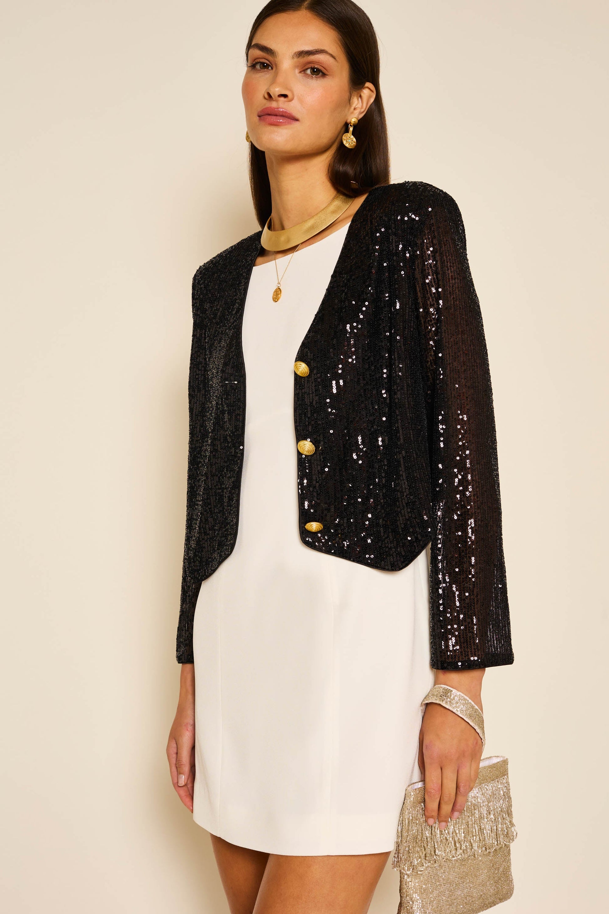 With a jacket like Oliwia in your wardrobe, you'll be ready for festive dinners, parties or date nights. It's made from stretch sequinned fabric and fastens with vintage-inspired gold buttons. Wear it with jeans, our Kelly skirt or layered over dresses.