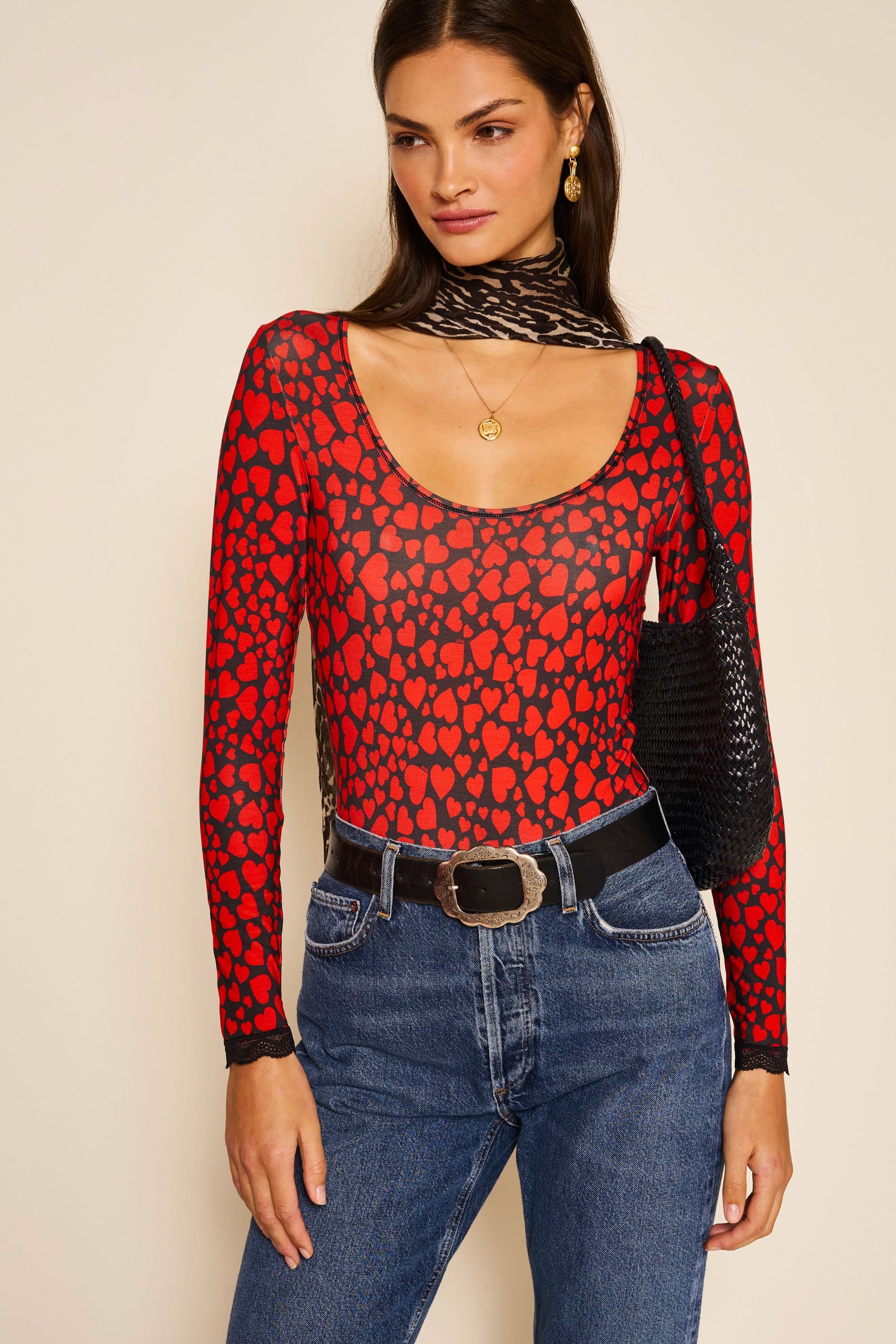 Our love heart print looks especially playful and romantic on this plunge bodysuit. From our collaboration with Stripe & Stare, iIt's trimmed with lace for elegance and fastens with poppers for ease.