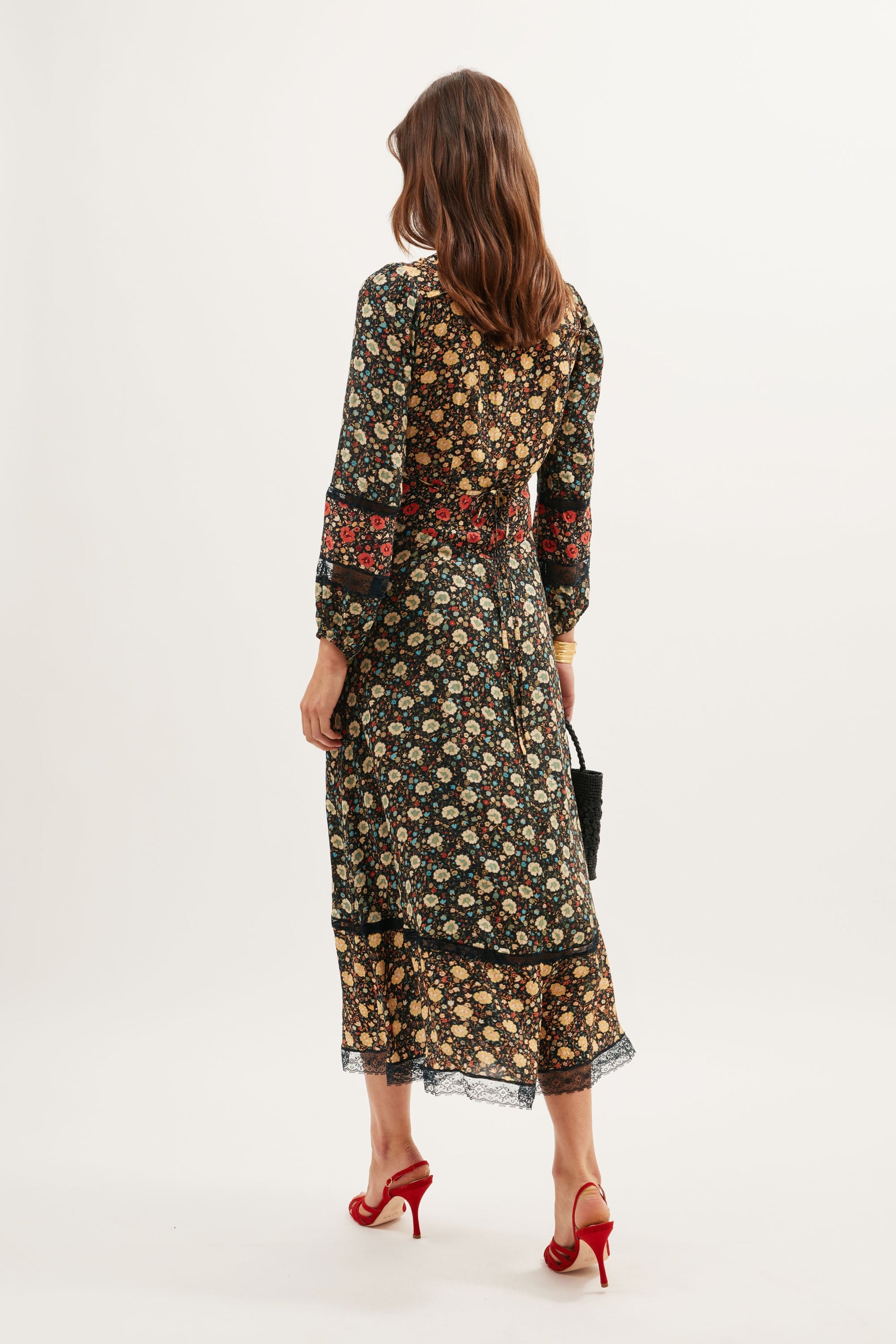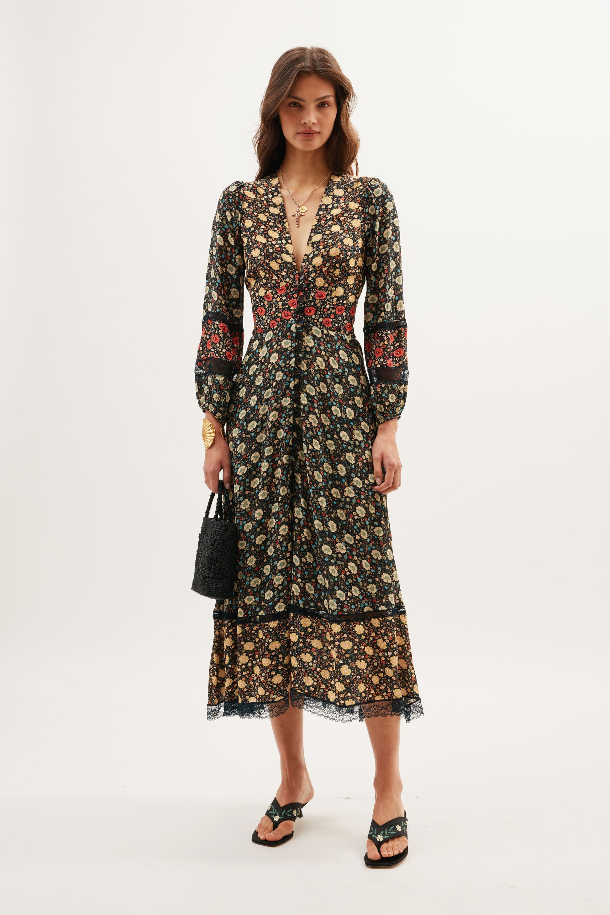 Raven is based on our Novara dress, but we've added long sleeves and delicate lace trims. The mixed prints are a RIXO signature and the mother-of-pearl buttons give such an elegant finish.
