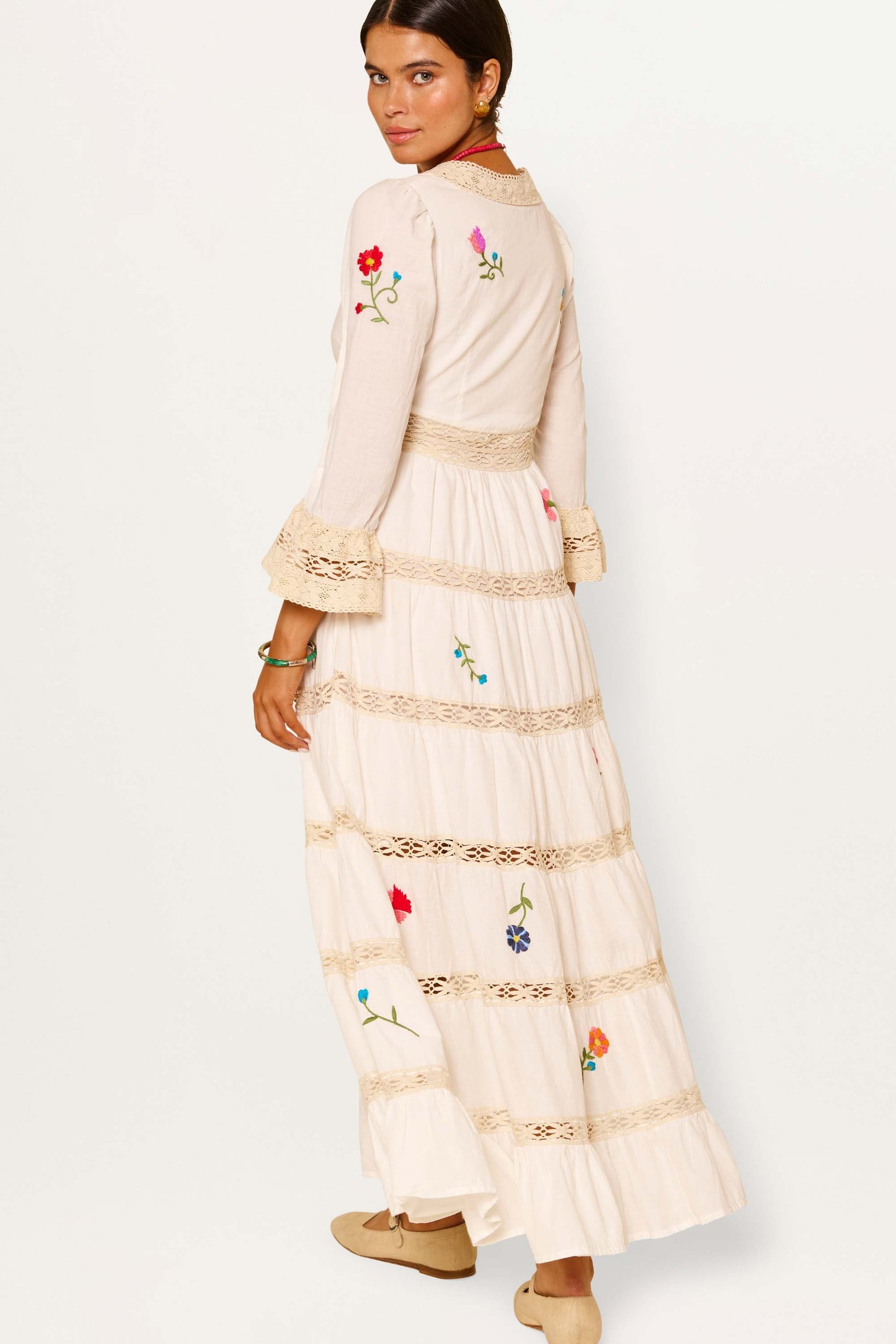 Available in regular and petite. Bohemian and feminine, this Regine dress is perfect for summer. Made from cotton in breezy tiers, it's embroidered with colourful florals.