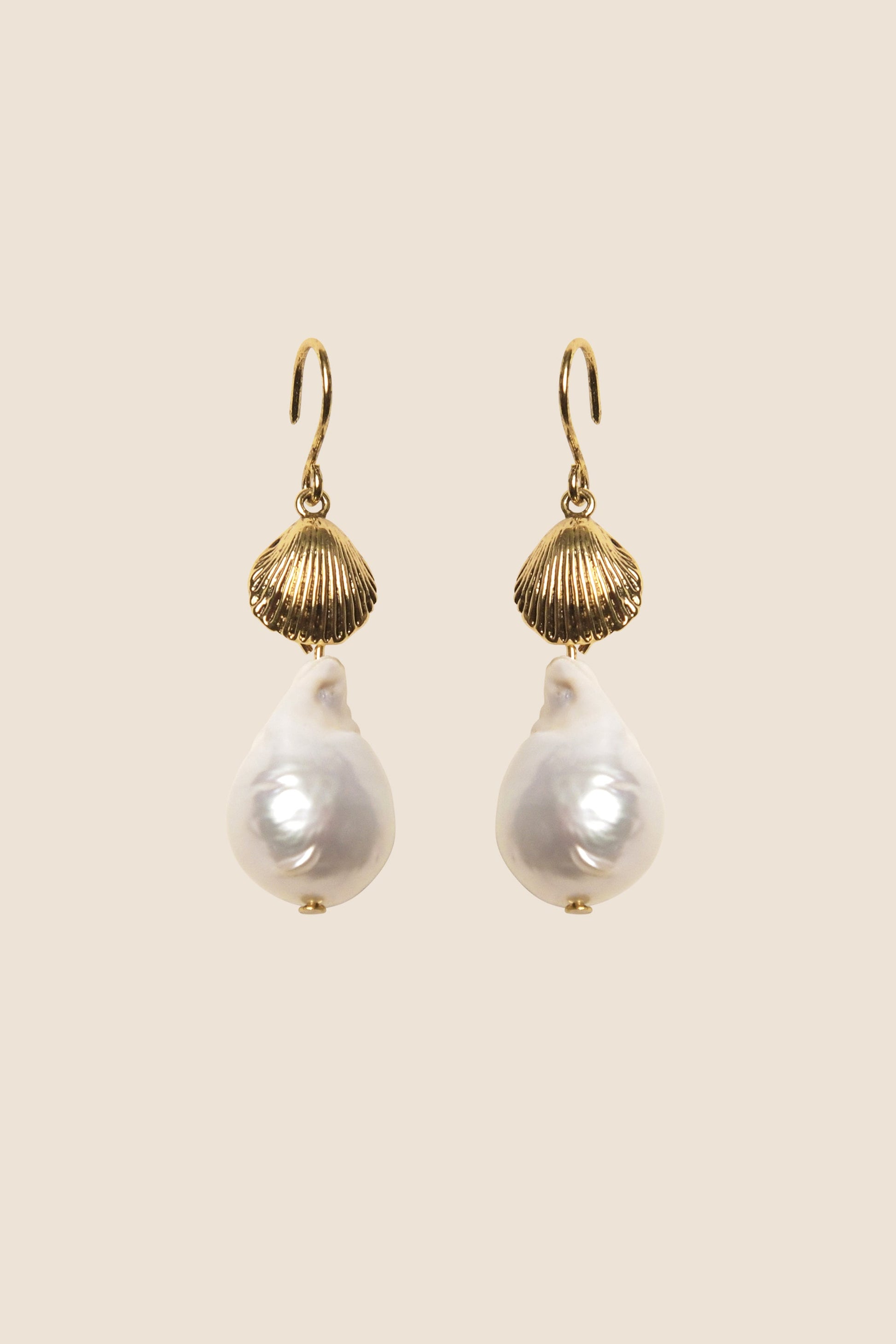 These Rosaria drop earrings are an elegant way to complete your outfit. The dainty gold-plated shells are threaded with resin pearls that sway gently as you move.