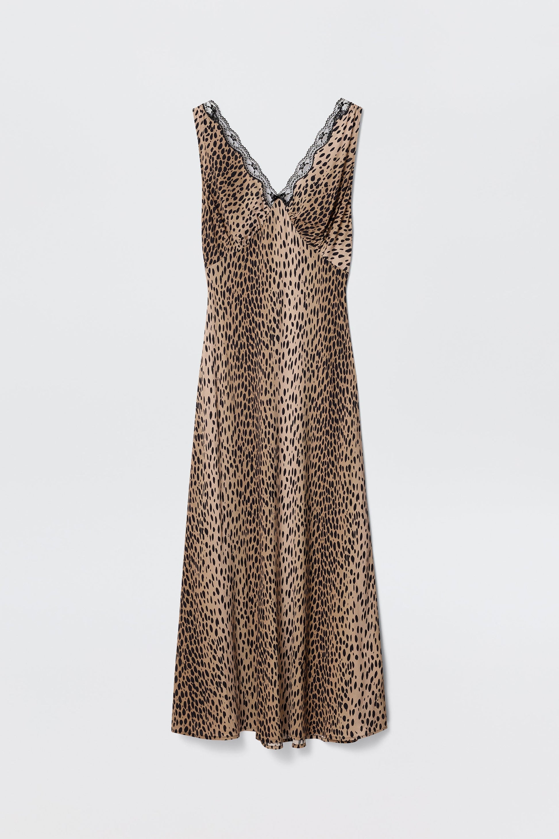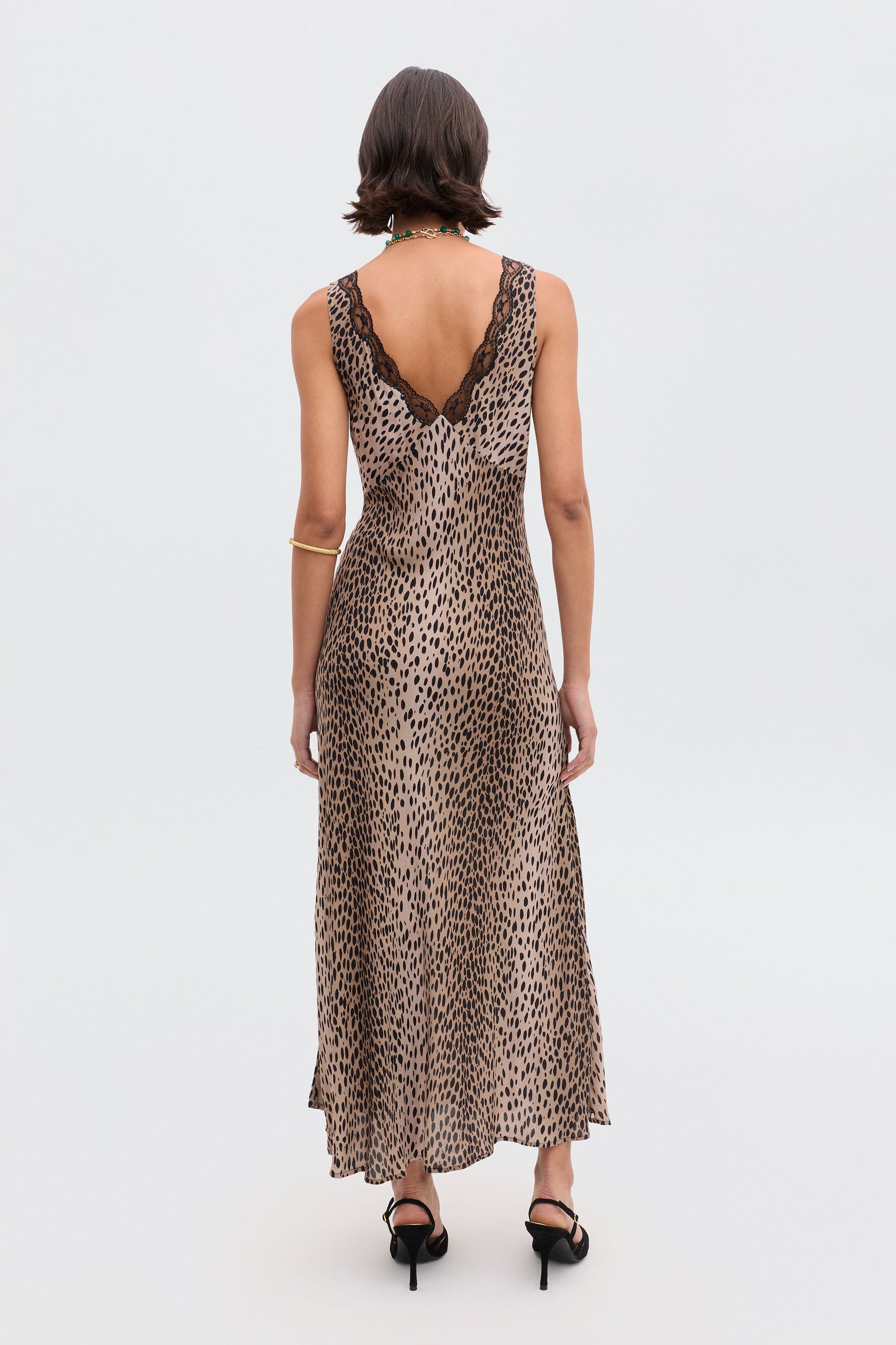Our Sandrine slip dress is perfect for so many occasions. A RIXO signature, it's cut on the bias for a body-skimming fit, with angled underbust seams and wide straps to conceal a bra. This one is made from animal-print crepe.