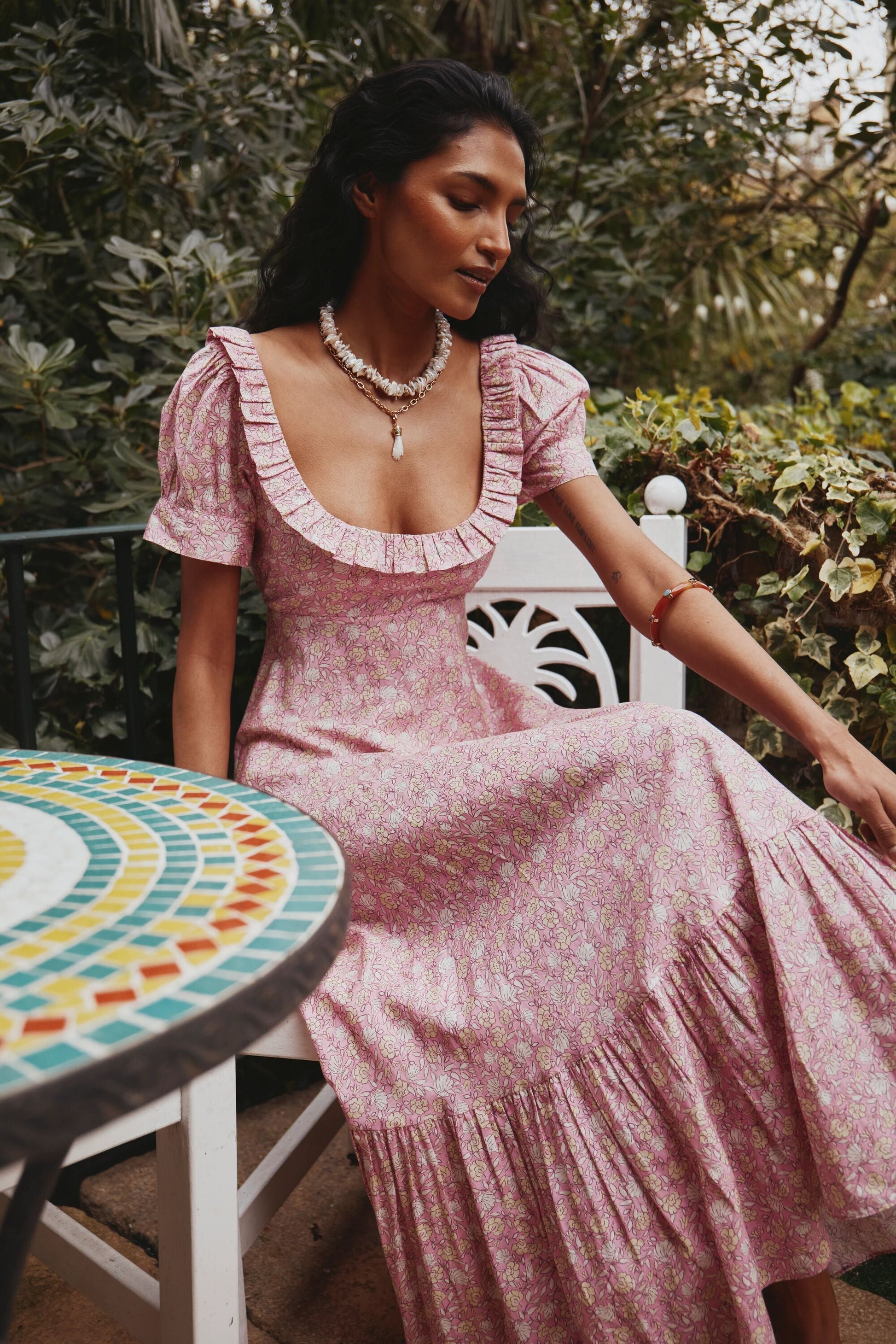 Solana is the perfect vintage prairie dress, with ruffled accents and ties that draw in your waist. We worked with vintage samples to get the shape and fit just right.