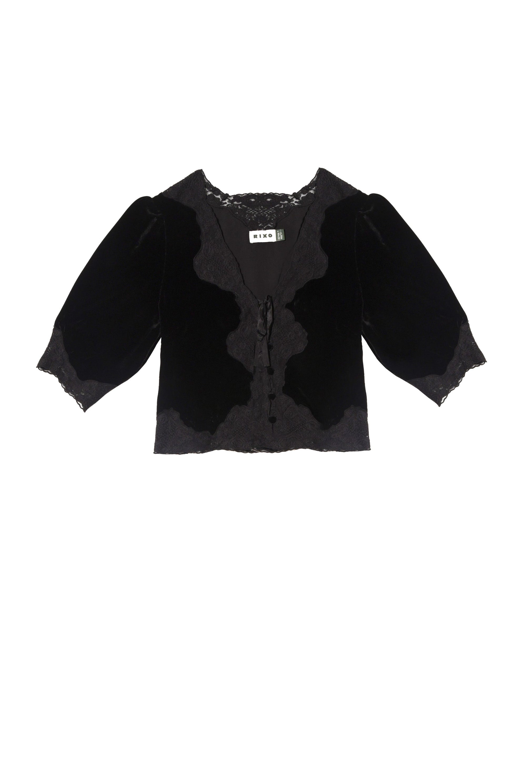 We think Ursula is the perfect party top - wear it with jeans or over our Clarice or Sandrine dresses. It's made from silk-rich velvet that's trimmed with lace and a satin bow for our signature vintage charm.