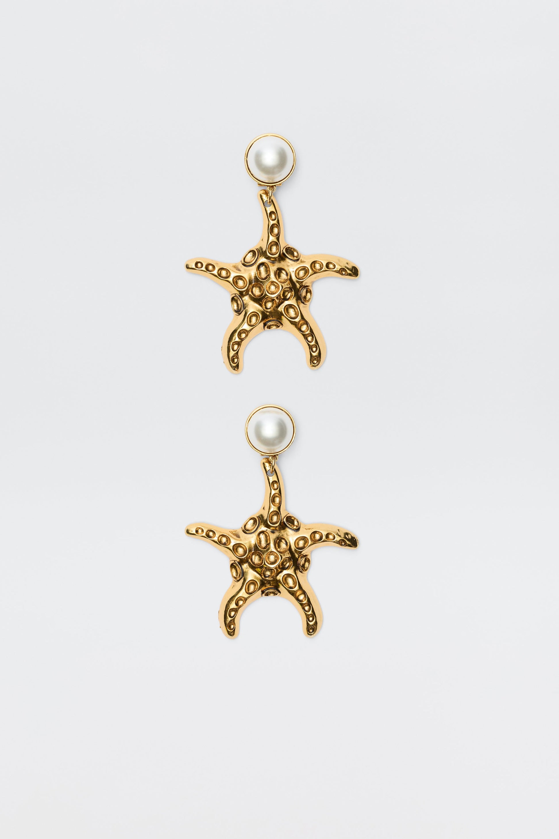 These oversized Zeina earrings will make a statement with any outfit. They're made from 18-karat gold-plated metal with resin pearl studs and clip-on fastenings that work even without piercings.
