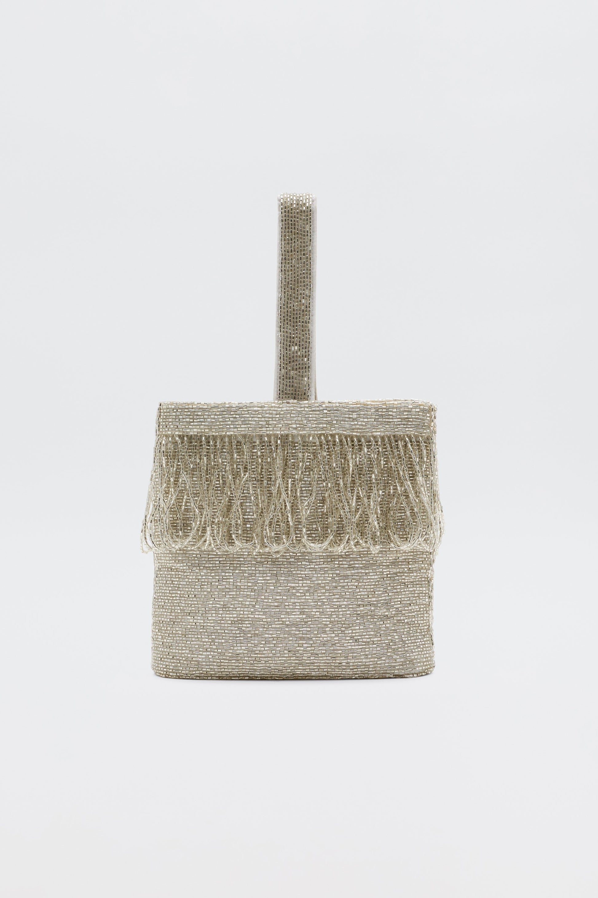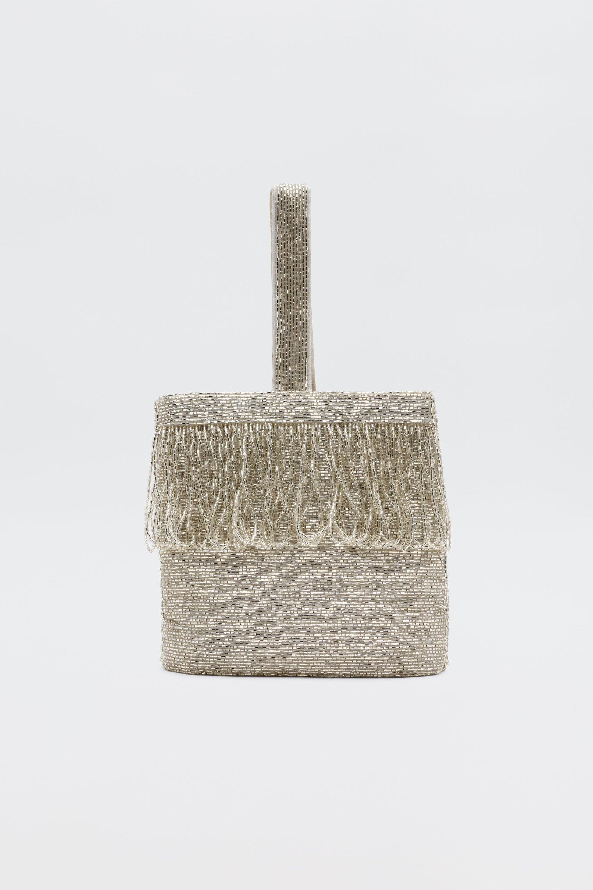 Zenni is a silk-lined, beaded occasion bag with a rounded top handle that fits comfortably on your arm.