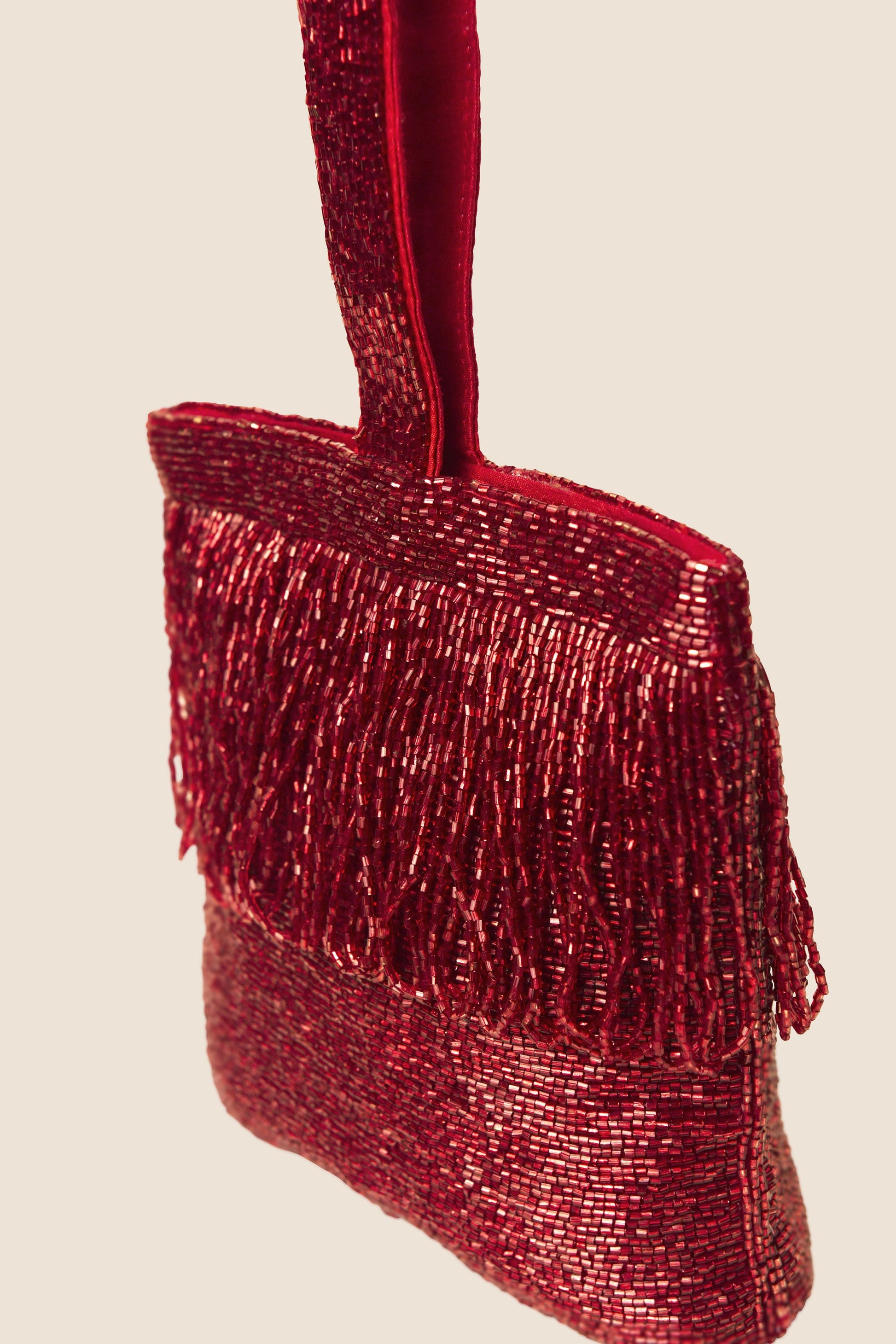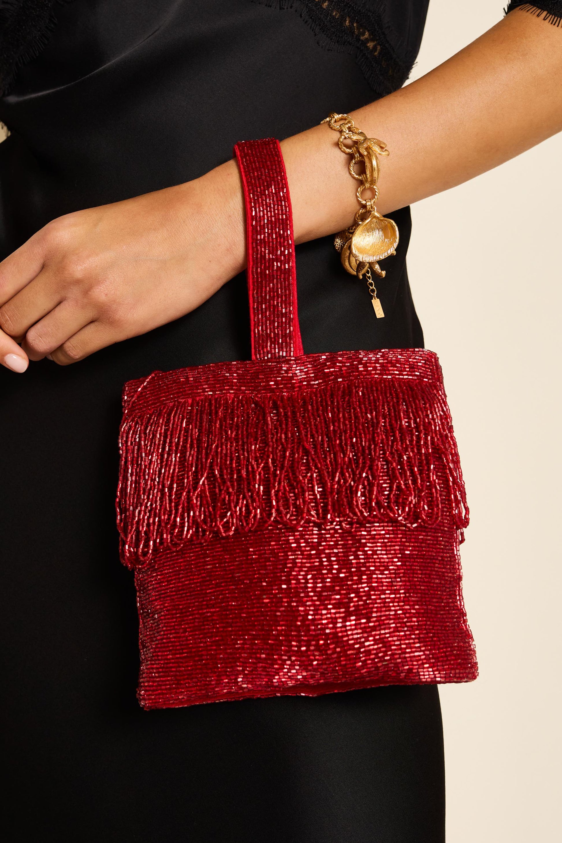 A beautiful occasion outfit deserves a bag to match - that's why we designed Zenni. It's covered with shimmering beads and sits neatly over the crook of your arm to keep your hands free for a drink. The silk-lined interior is big enough to fit your phone and makeup essentials and snaps shut to keep them safe.